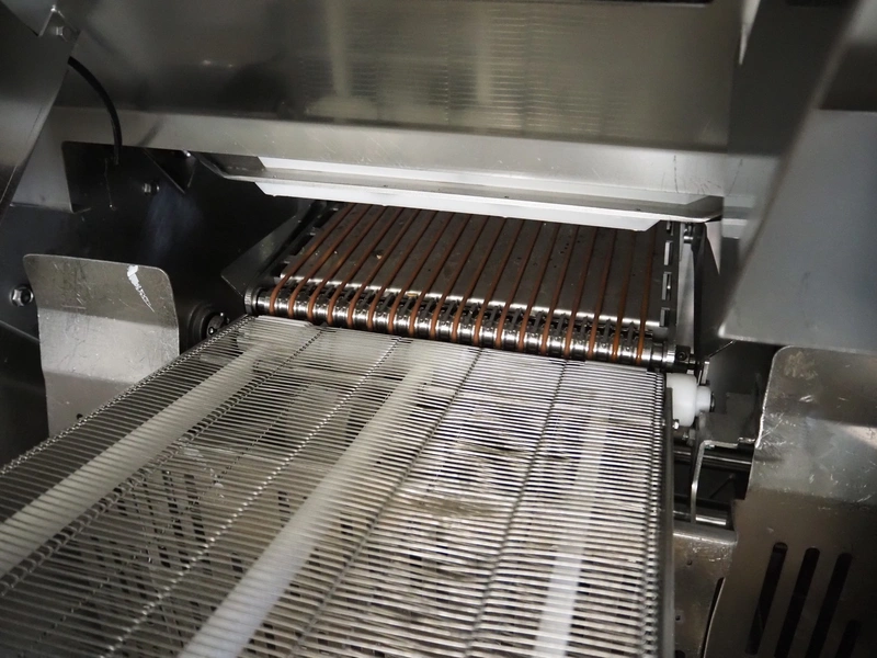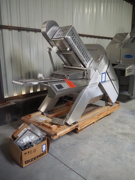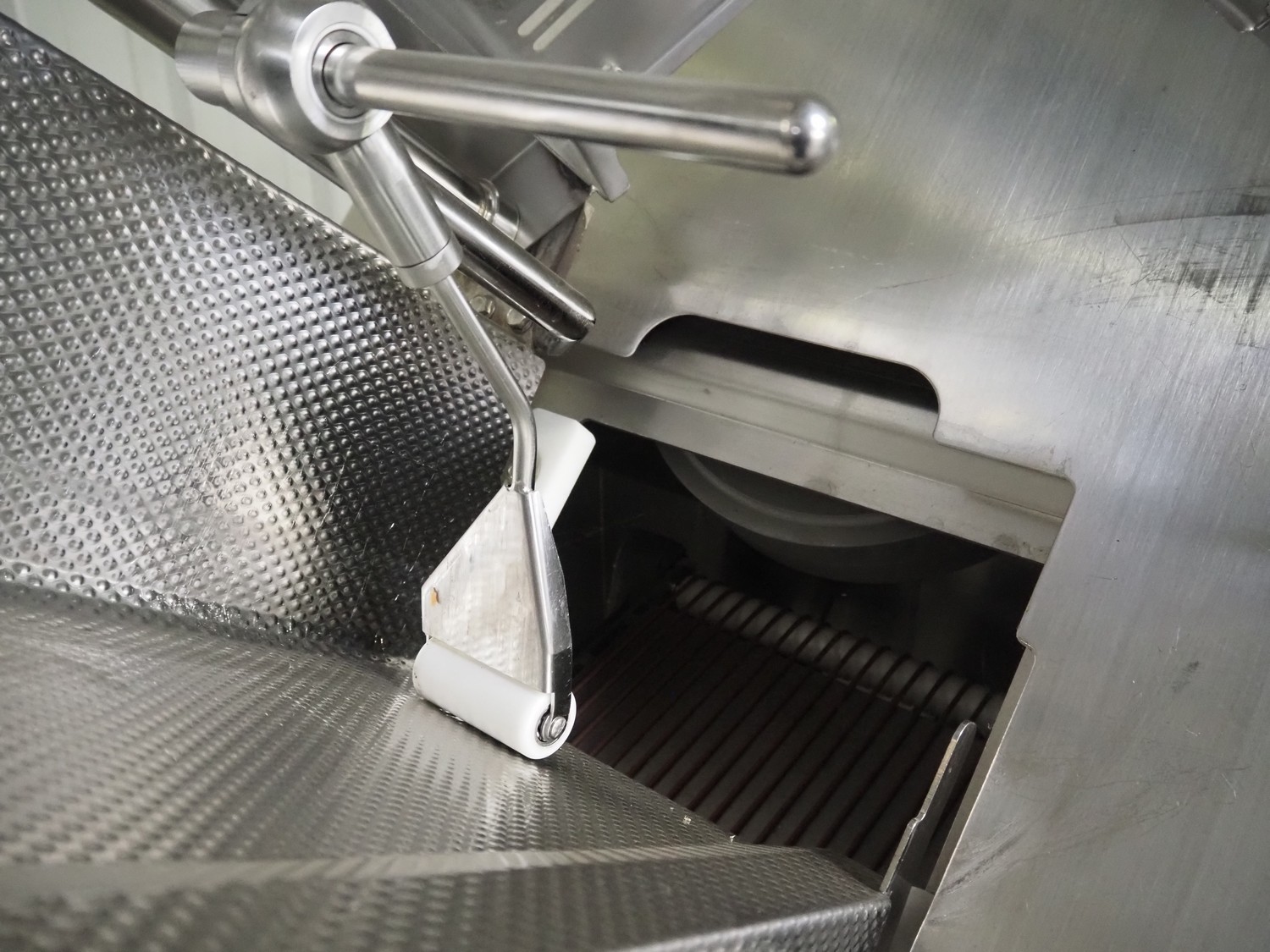 Bizerba GmbH & Co. KG slicer, type: A510, s/s mesh belt, belt width: 300 mm, total dimensions: 2380 mm x 820 mm x 1730 mm. Including box with extra parts.