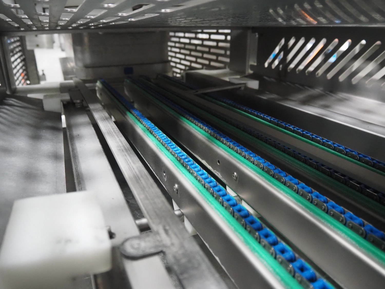Sealpac GmbH traysealer, type: SEALPAC 800+, serial number: TVG 01 1125 01, year of construction: 2004, 230/400 V, 3 Ph, 10 kW, 2000 kg, chain belt, belt width: 40 mm, clearance: 340 mm x 110 mm, total dimensions: 3600 mm x 1000 mm x 2100 mm. Including outfeed belt, dimensions: 4000 mm x 1000 mm x 1150 mm.