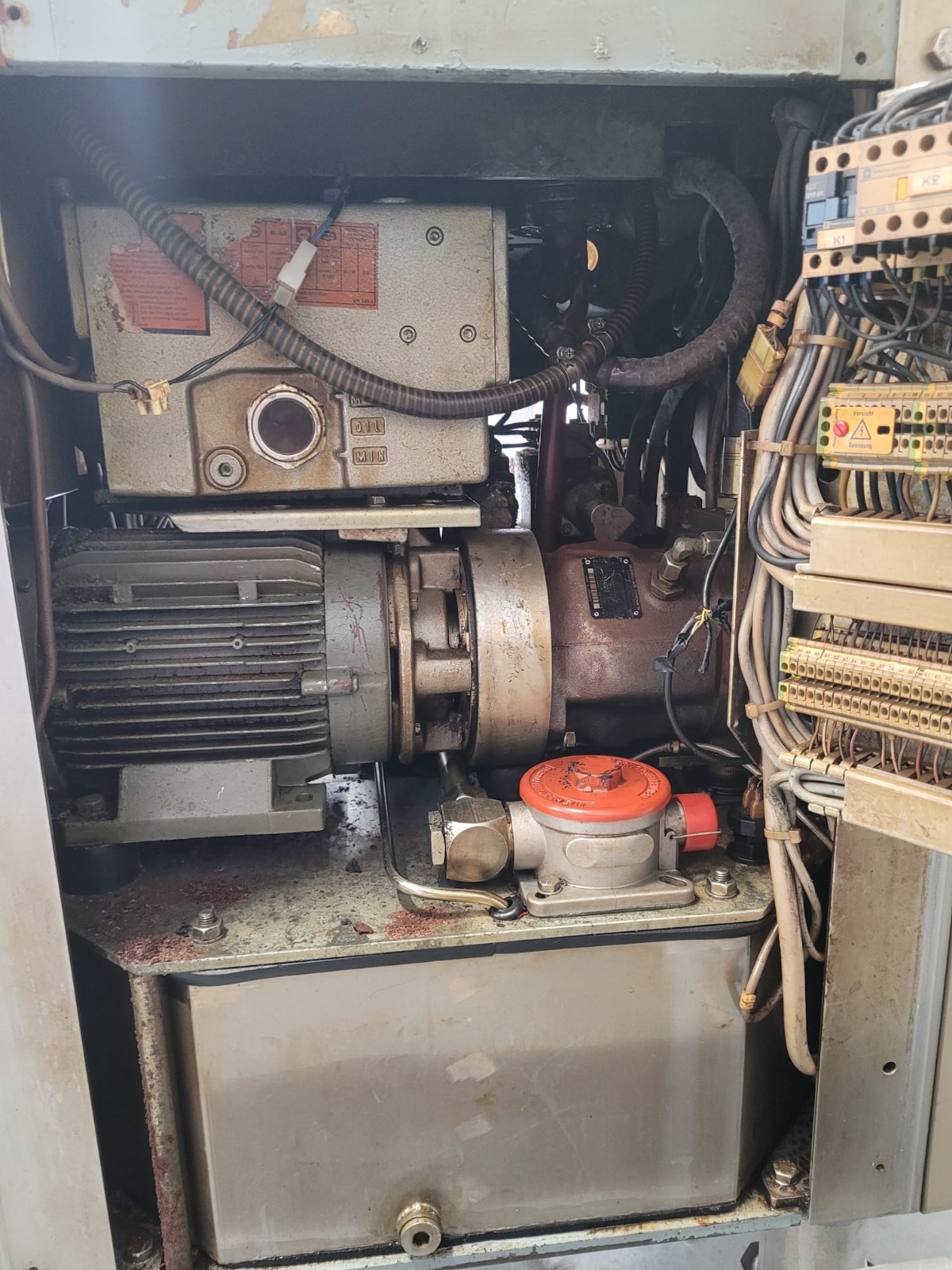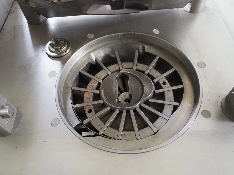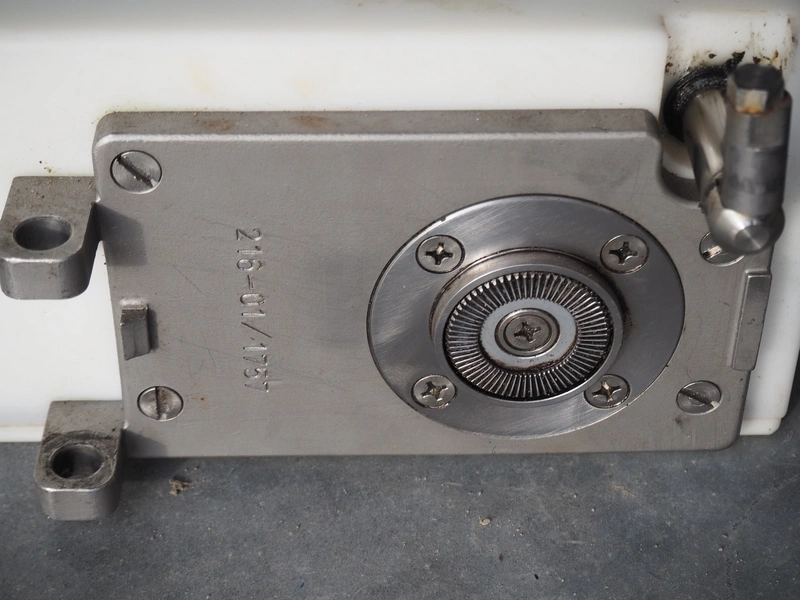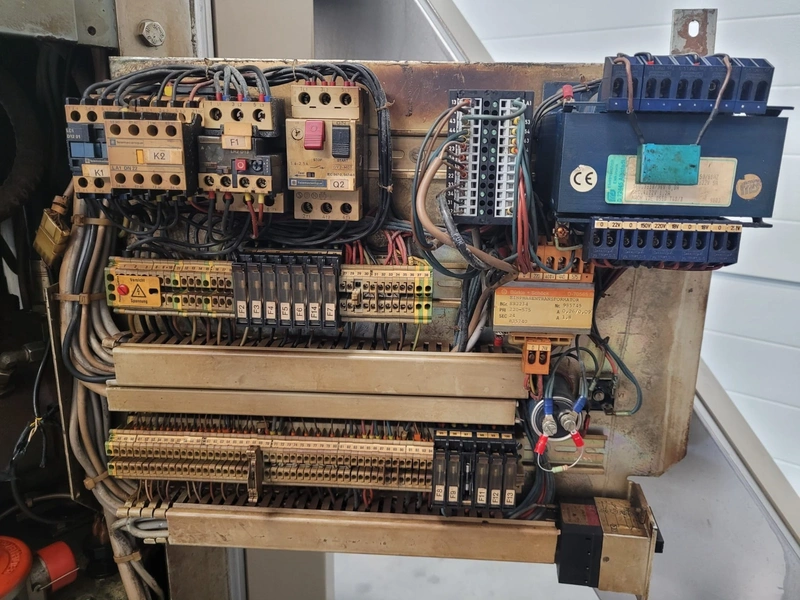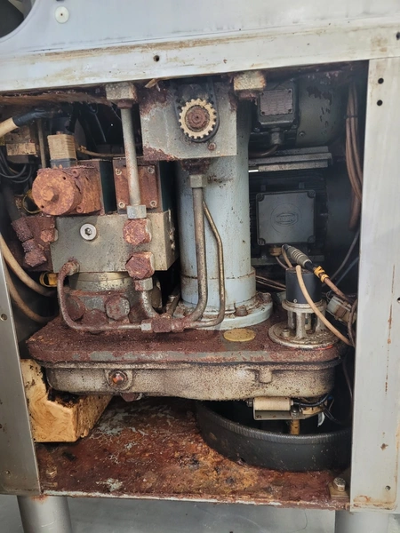 Handtmann vacuum filling machine with lifter for 200 liter meat bins, type: VF80B, number: 3290, year of construction: 1998, 400 V, 50 Hz, 12.6 A, 4.5 kW, filling, portioning and linking, dimensions: 1800 mm x 1200 mm x 1850 mm. Including Handtmann case holding device, type: 216-01, number: 1757.