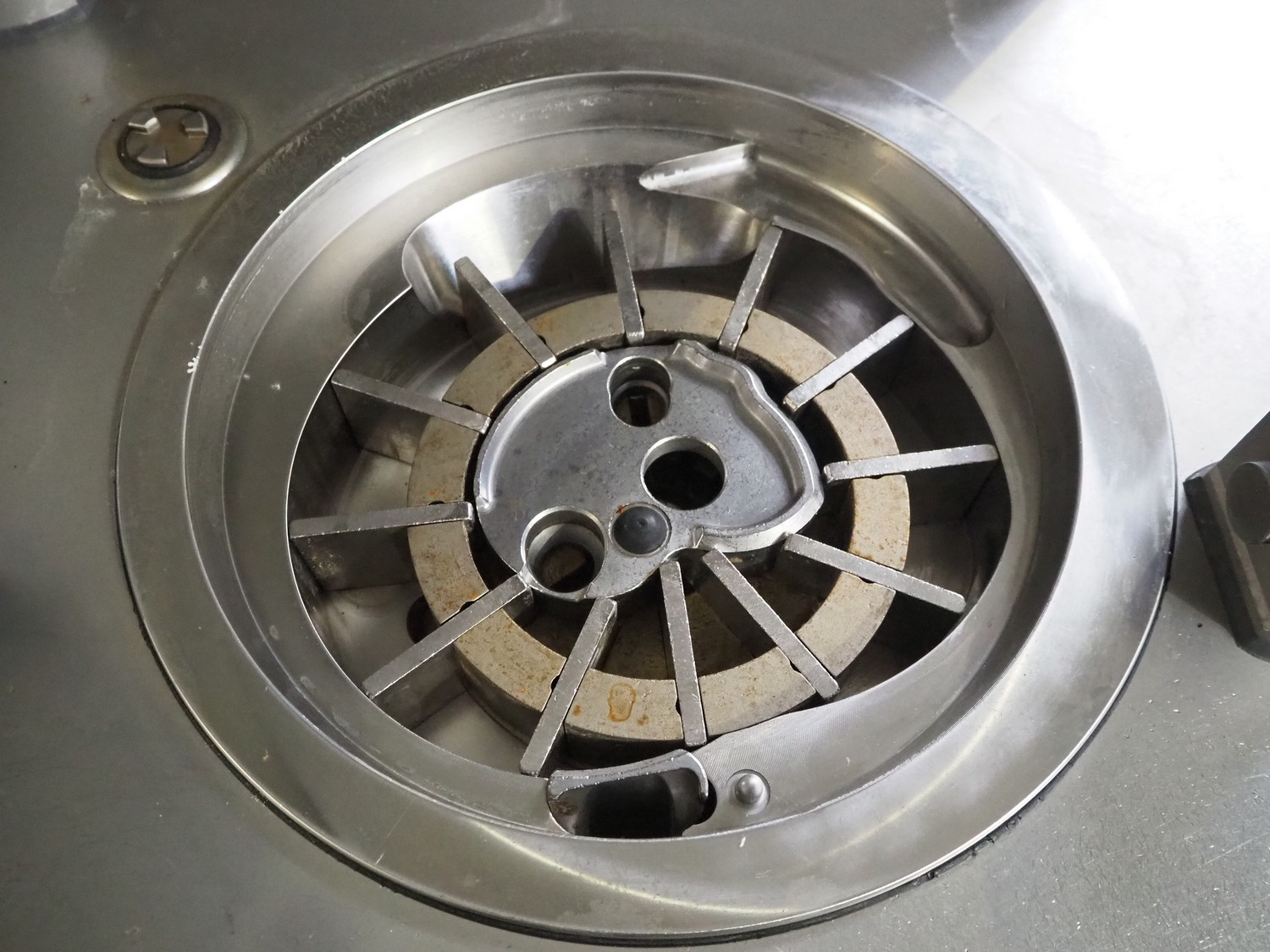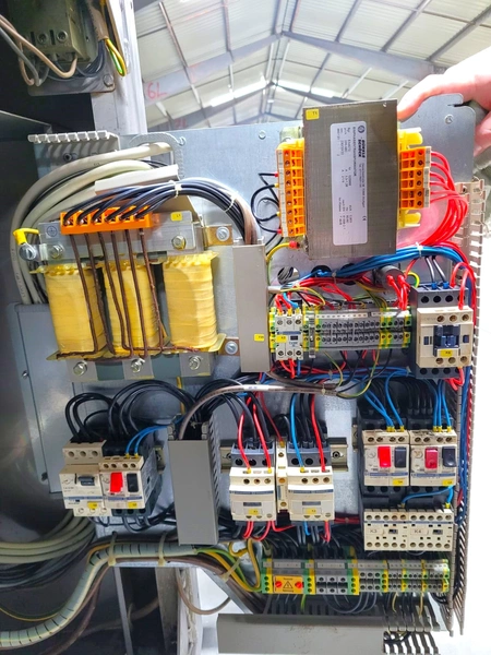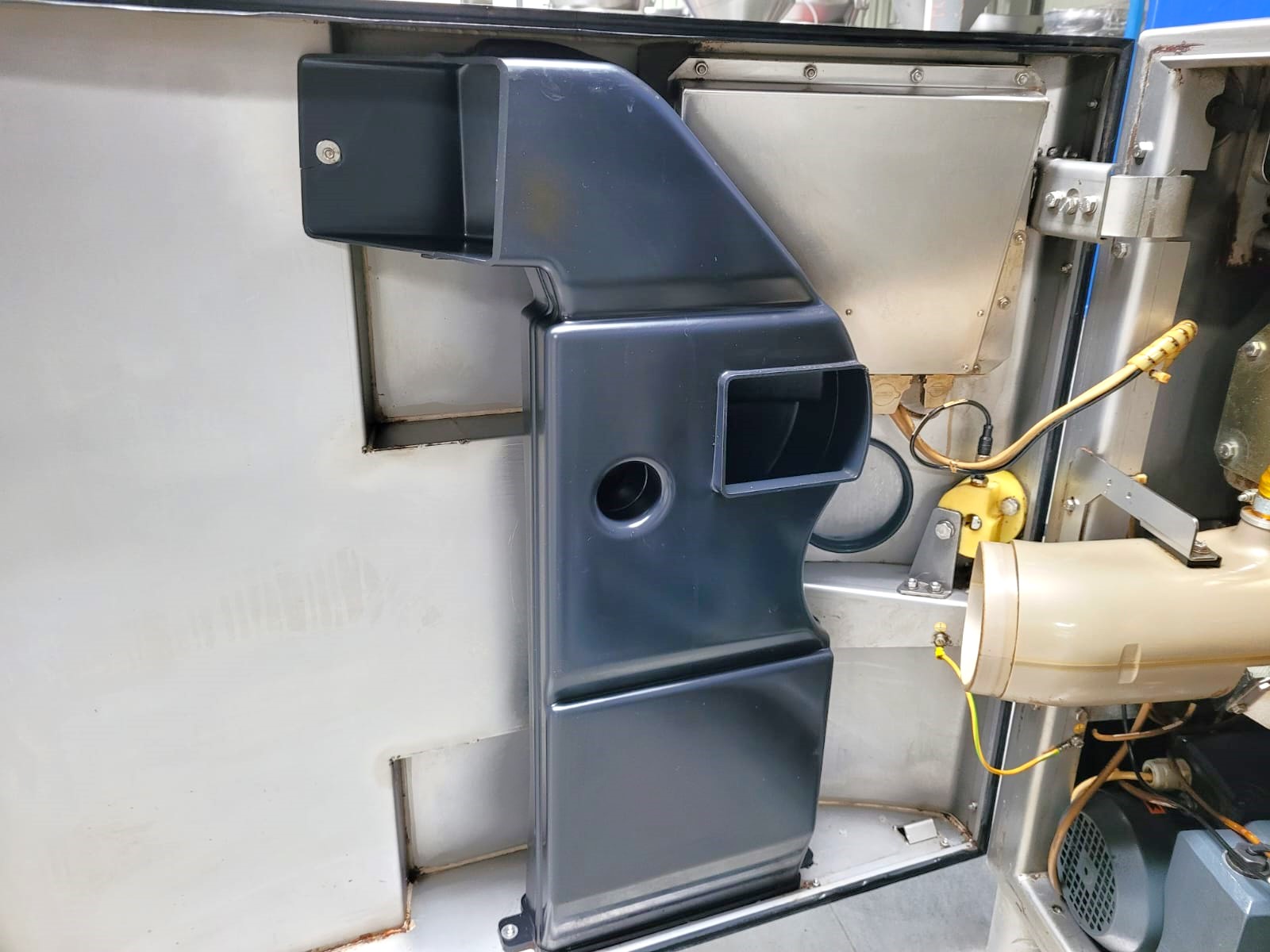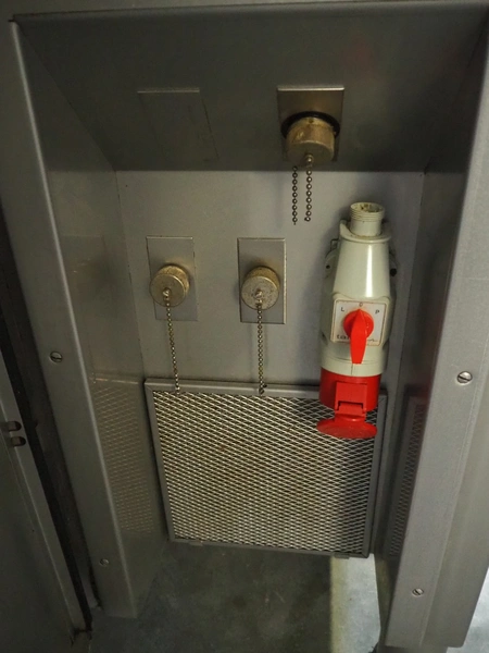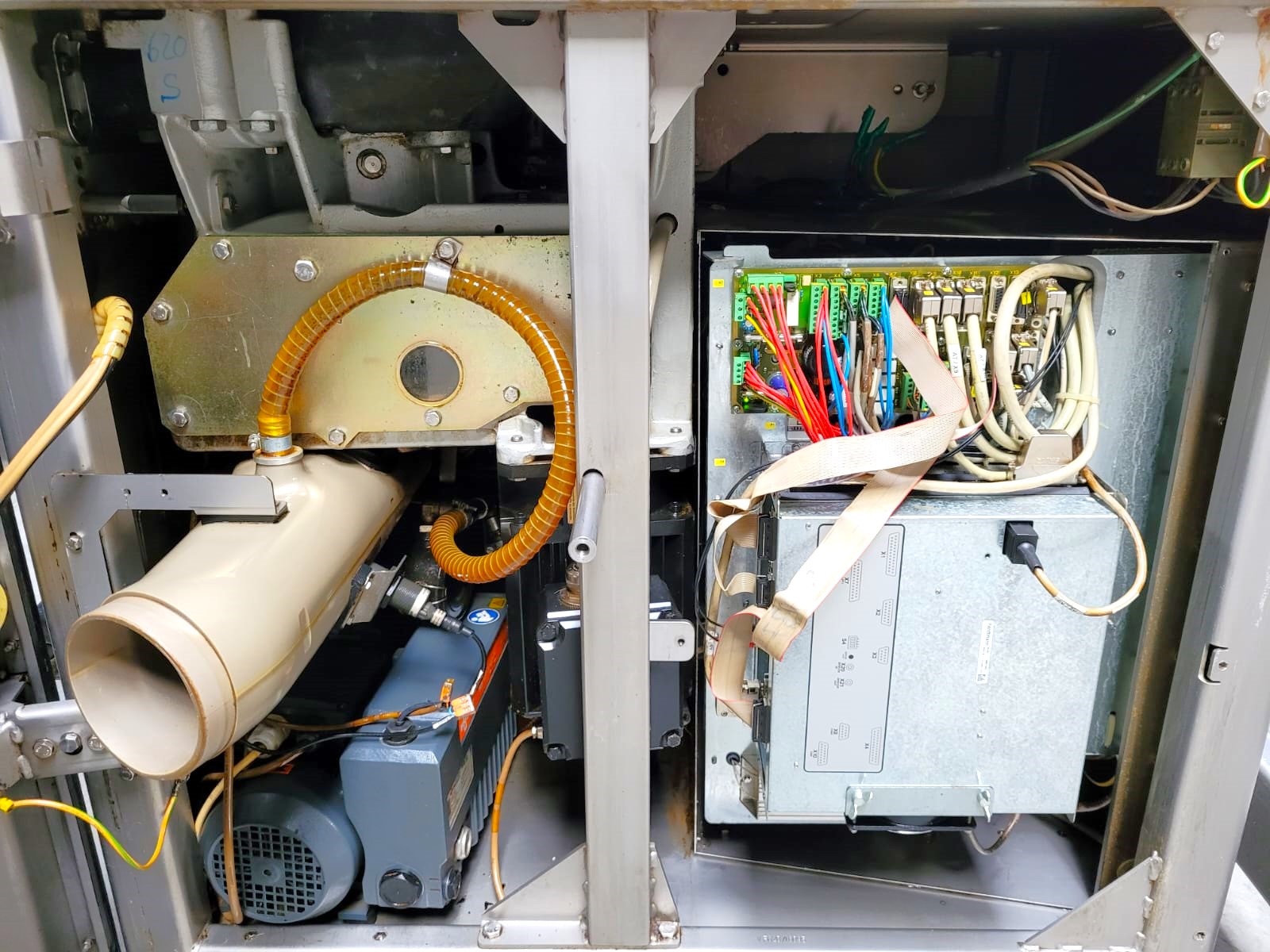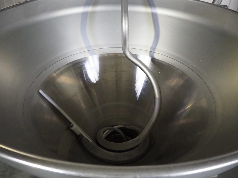 Handtmann vacuum filling machine with lifter for 200 liter meat bins, type: VF620, number: 16095, year of construction: 2002, 400 V, 3 Ph, 50 Hz, 11.5 A, 8 kW, knee control, dimensions: 2200 mm x 1400 mm x 1900 mm.