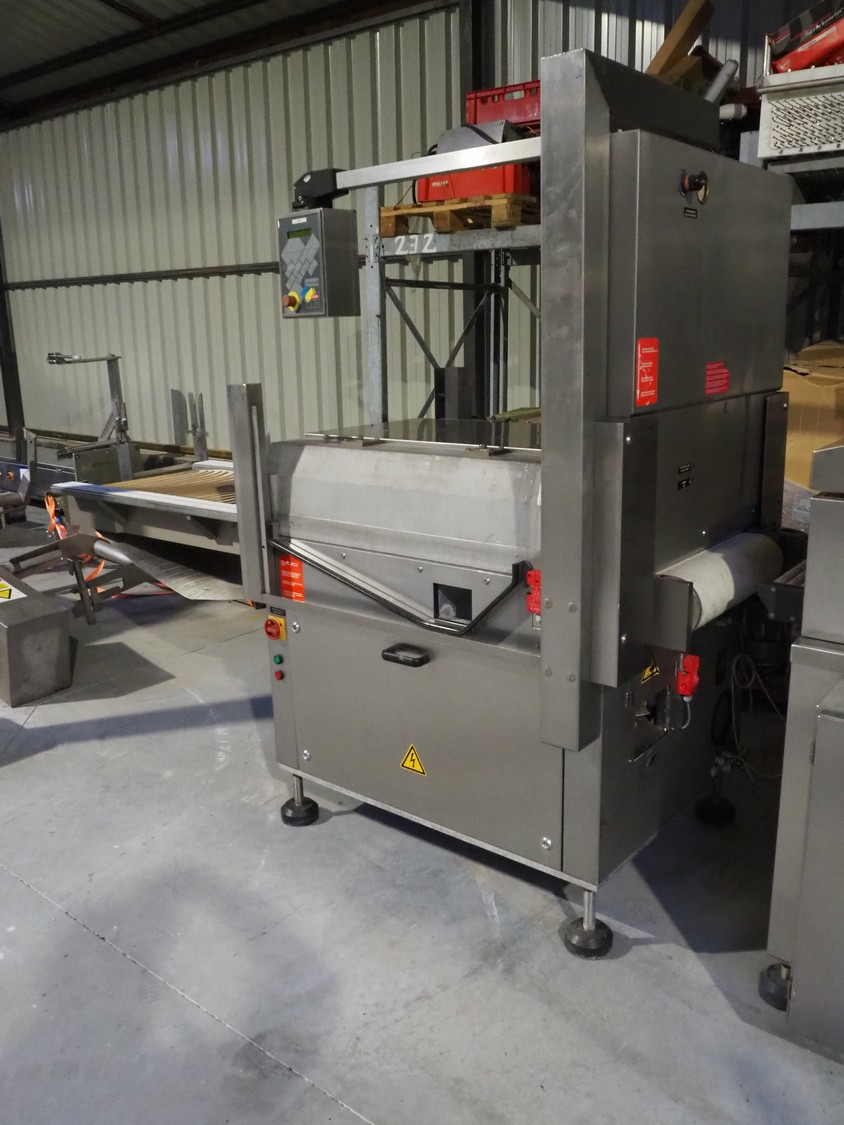 Cryovac belt vacuum machine, model: VS 85, serial number: A03600404, year of construction: 1998, 400 V, 3 Ph, 50 Hz, 20 A, 7 kW, plastic belt, belt width: 535 mm, total dimensions: 2600 mm x 1100 mm x 2050 mm.