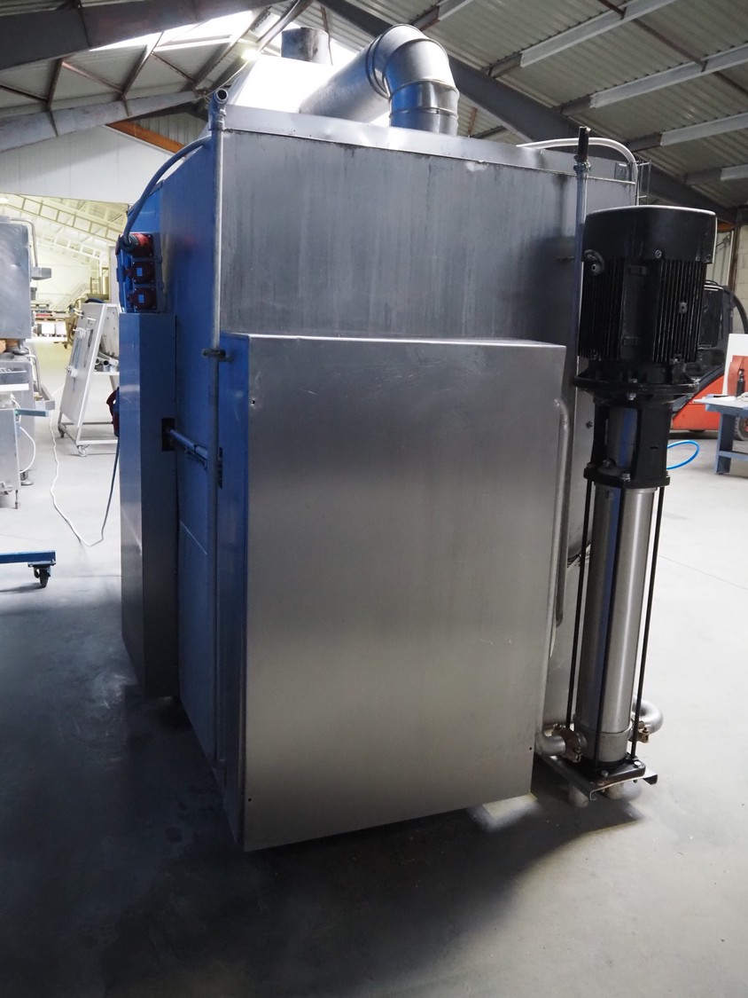 Meat bin washer for 200 liter meat bins, type: B42.1-MRD, serial number: 933250642, 380 V, 3 Ph, 35 A, 17.43 kW, clearance: 900 mm x 980 mm, total dimensions: 2940 mm x 1670 mm x 2630 mm.