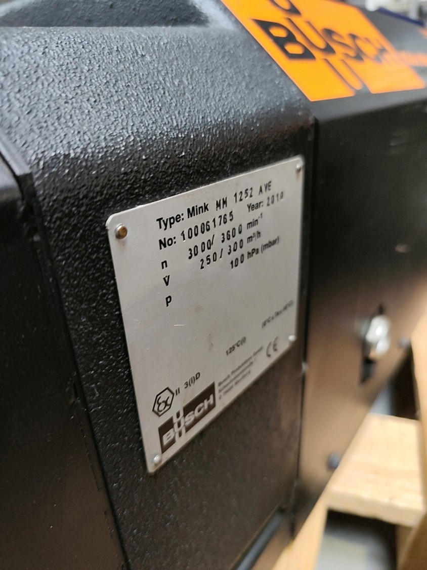Busch vacuum Pump, type: Mink MM 1252 AVE, serial number: 100061765, year of construction: 2010, 3000/3600 min-1, capacity: 250/300 m3/h, 100hPa (mbar), dimensions: 1200 mm x 520 mm x 850 mm.