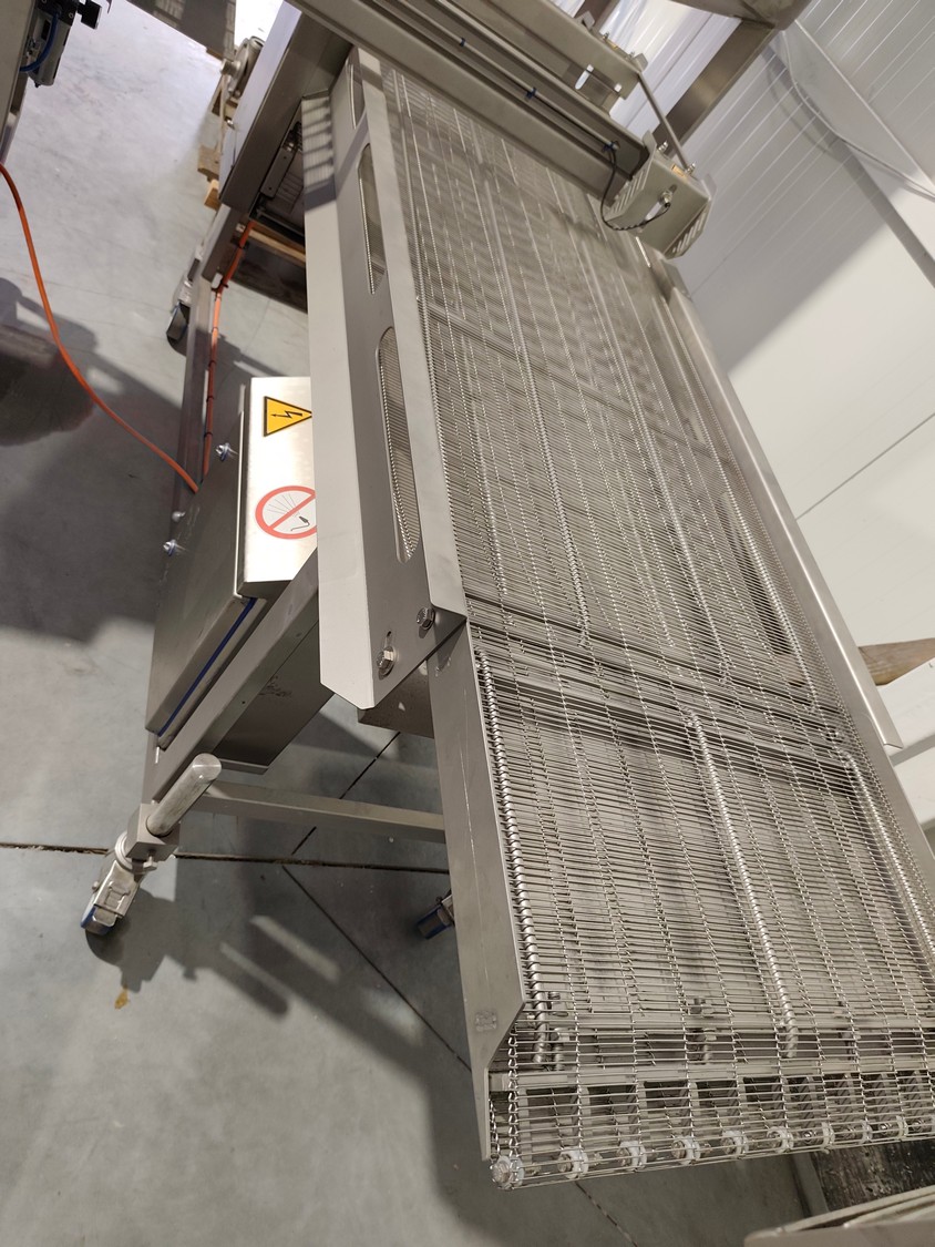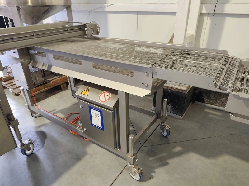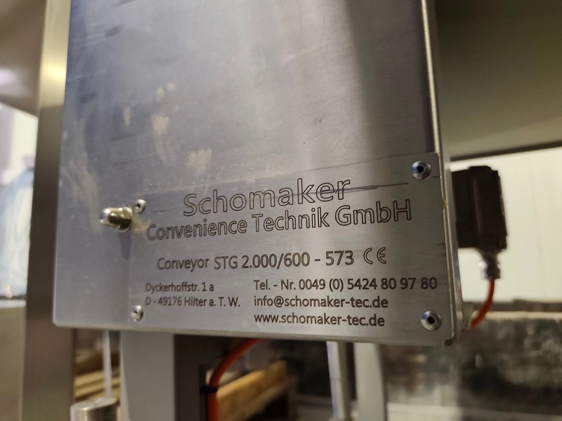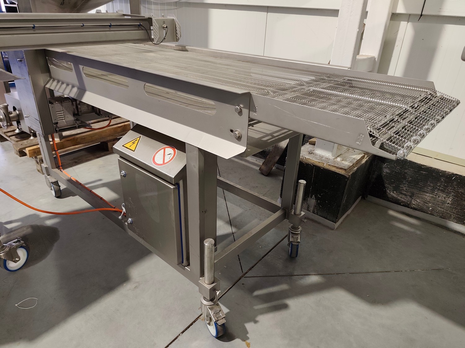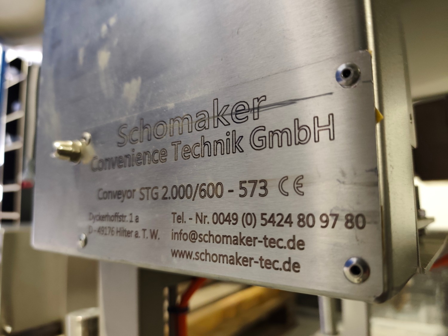 Schomaker Convenience Technik GmbH mobile conveyor, type STG 2.000/600 - 573, s/s mesh belt, belt width: 600 mm, total dimensions: 2000 mm x 1100 mm x 750 mm.