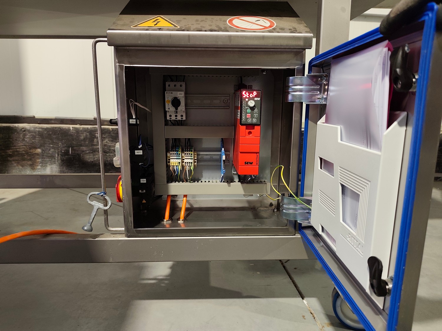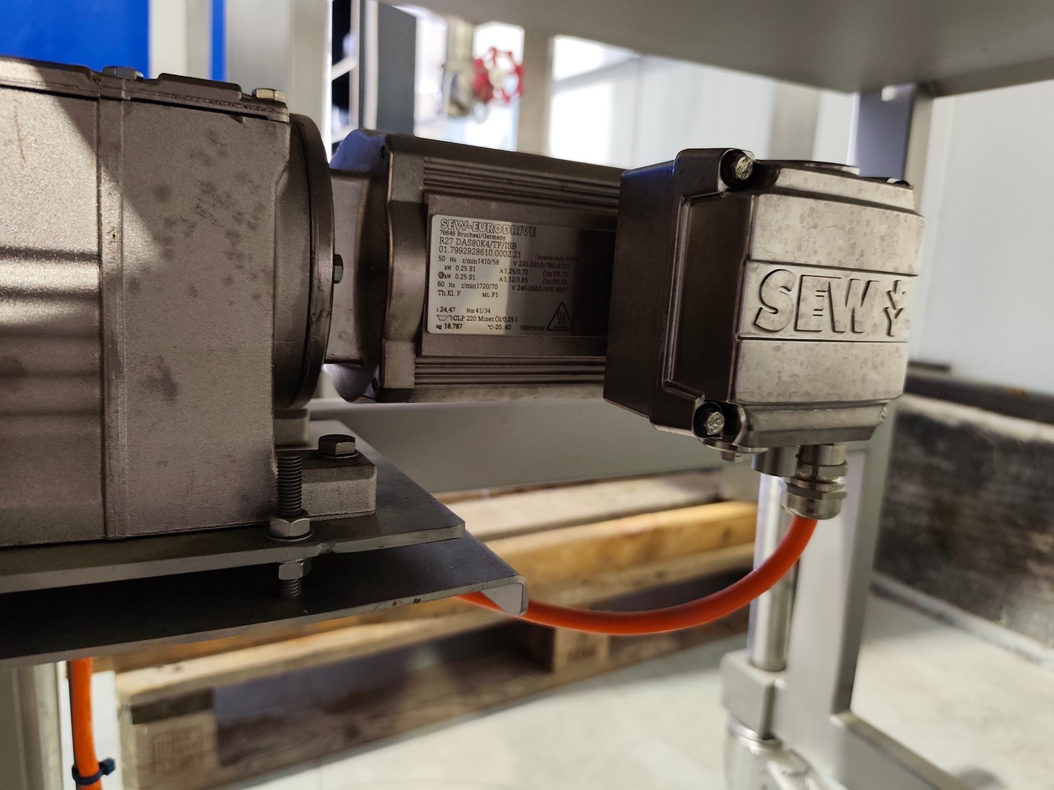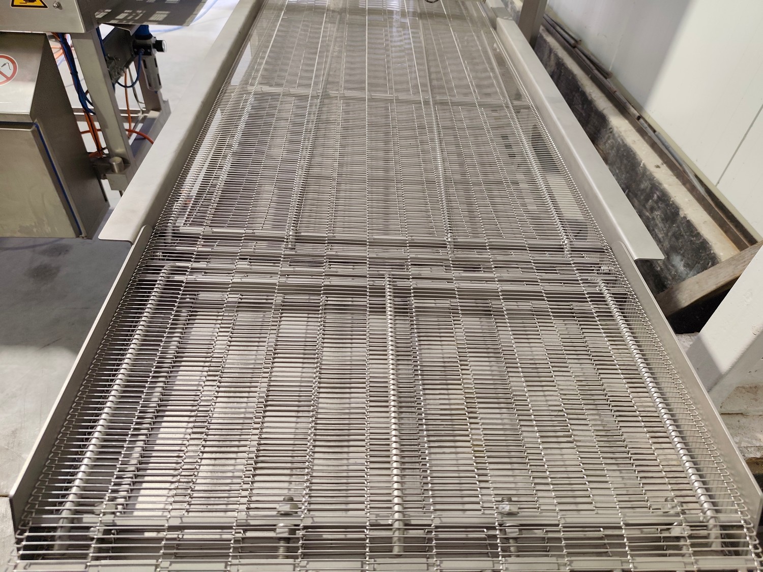 Schomaker Convenience Technik GmbH mobile conveyor, type STG 2.000/600 - 573, s/s mesh belt, belt width: 600 mm, total dimensions: 2000 mm x 1100 mm x 750 mm.