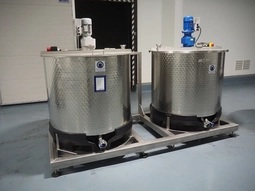 Inox s/s skid with 2 mixing tubs, inside dimensions: (2x) Ø 1200 mm x 1000 mm, total dimensions: 3000 mm x 1300 mm x 2000 mm.€ 2.000,000 bids23/12/2025 13:00 -