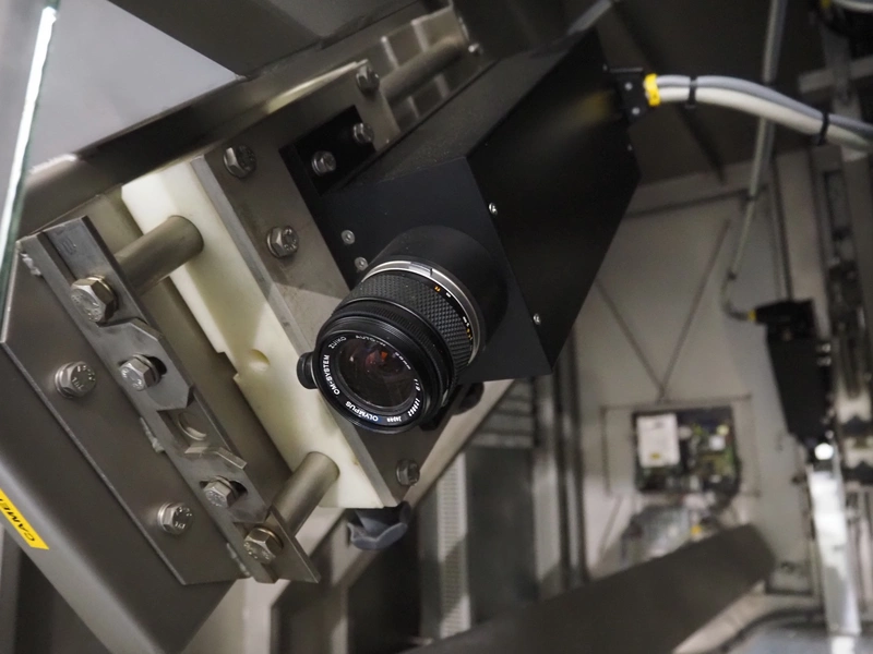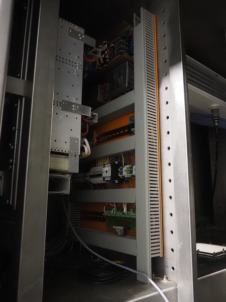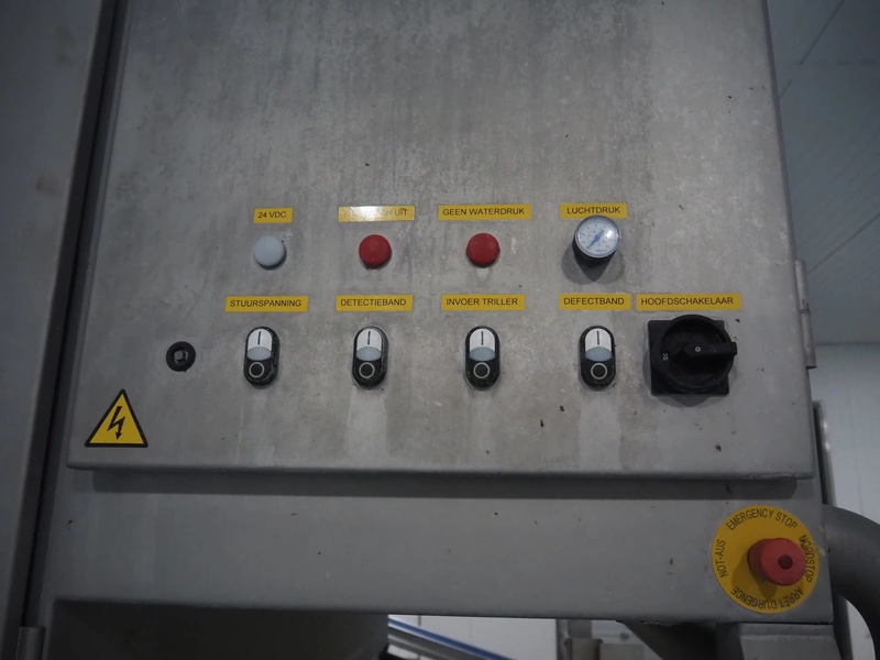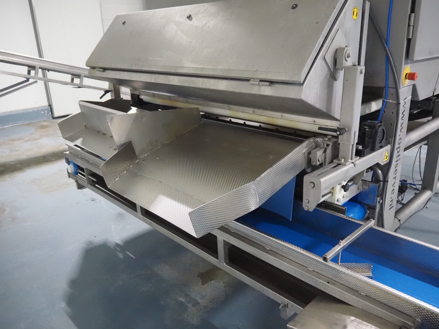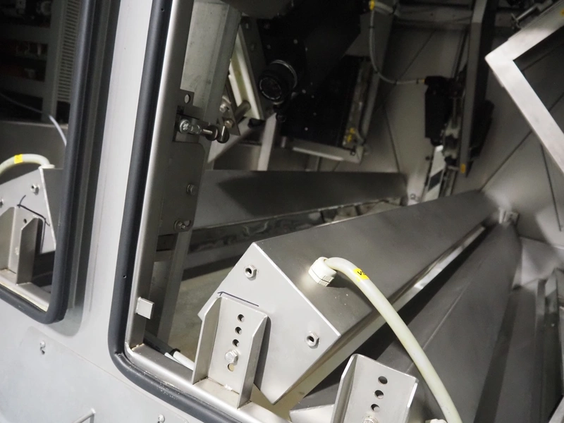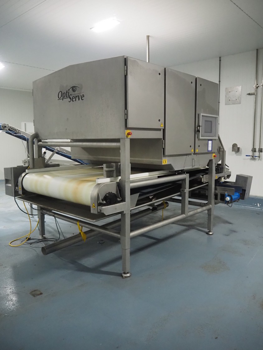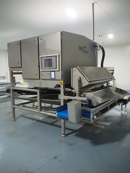 OptiServe optical colour sorting machine, type: OS1700-4C-DC, number: OS1700-002, year of construction: 2013, 400 V, 3 Ph, 50 Hz, 12 A 6,5 kW, weight: 1450 kg. plastic belt, belt width: 1700 mm, clearance: 1600 mm x 80 mm, 2 plastic outfeed belts, belt width: (2x) 300 mm, total dimensions: 3550 mm x 3150 mm x 2660 mm.
