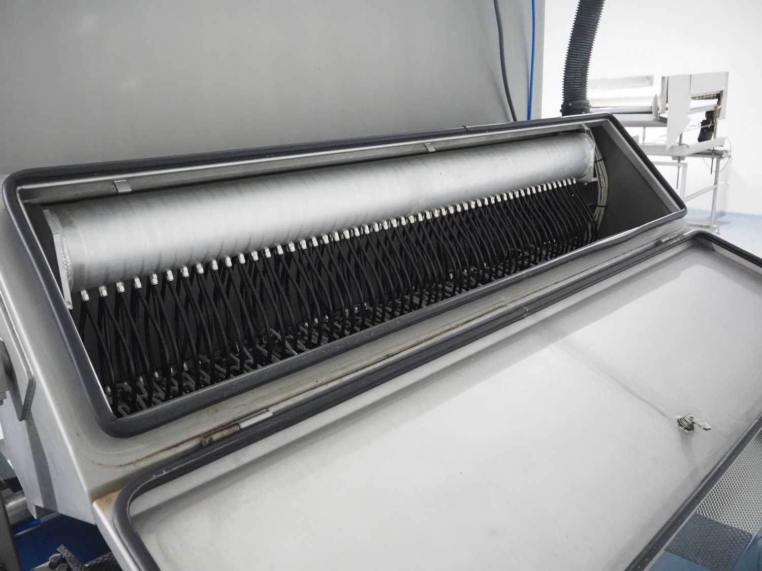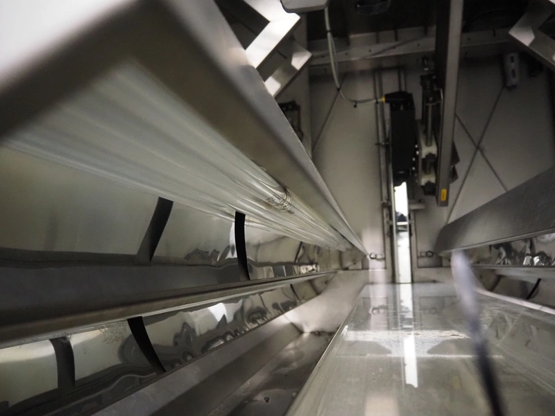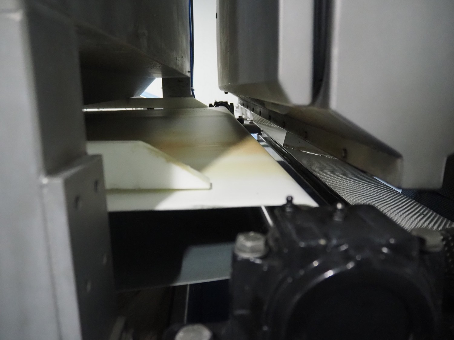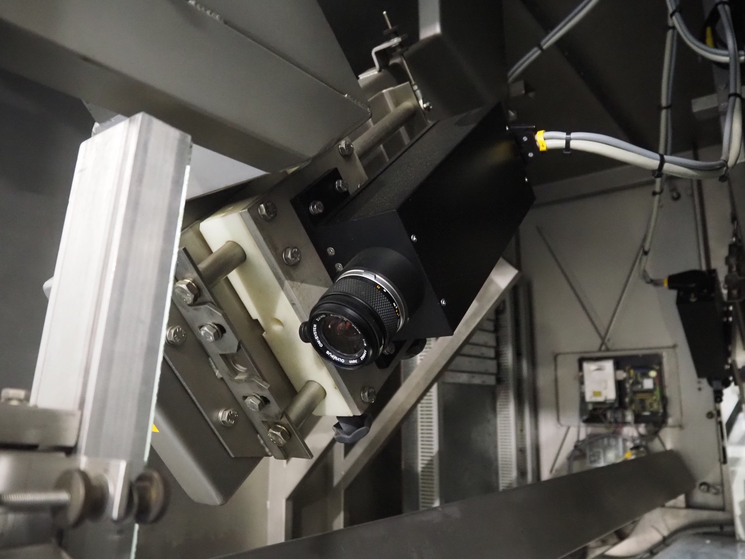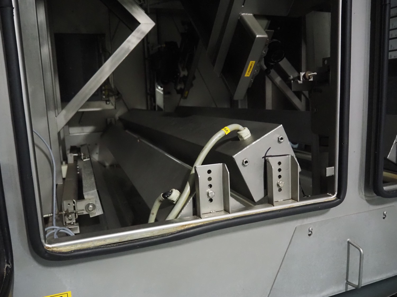 OptiServe optical colour sorting machine, type: OS1700-4C-DC, number: OS1700-002, year of construction: 2013, 400 V, 3 Ph, 50 Hz, 12 A 6,5 kW, weight: 1450 kg. plastic belt, belt width: 1700 mm, clearance: 1600 mm x 80 mm, 2 plastic outfeed belts, belt width: (2x) 300 mm, total dimensions: 3550 mm x 3150 mm x 2660 mm.
