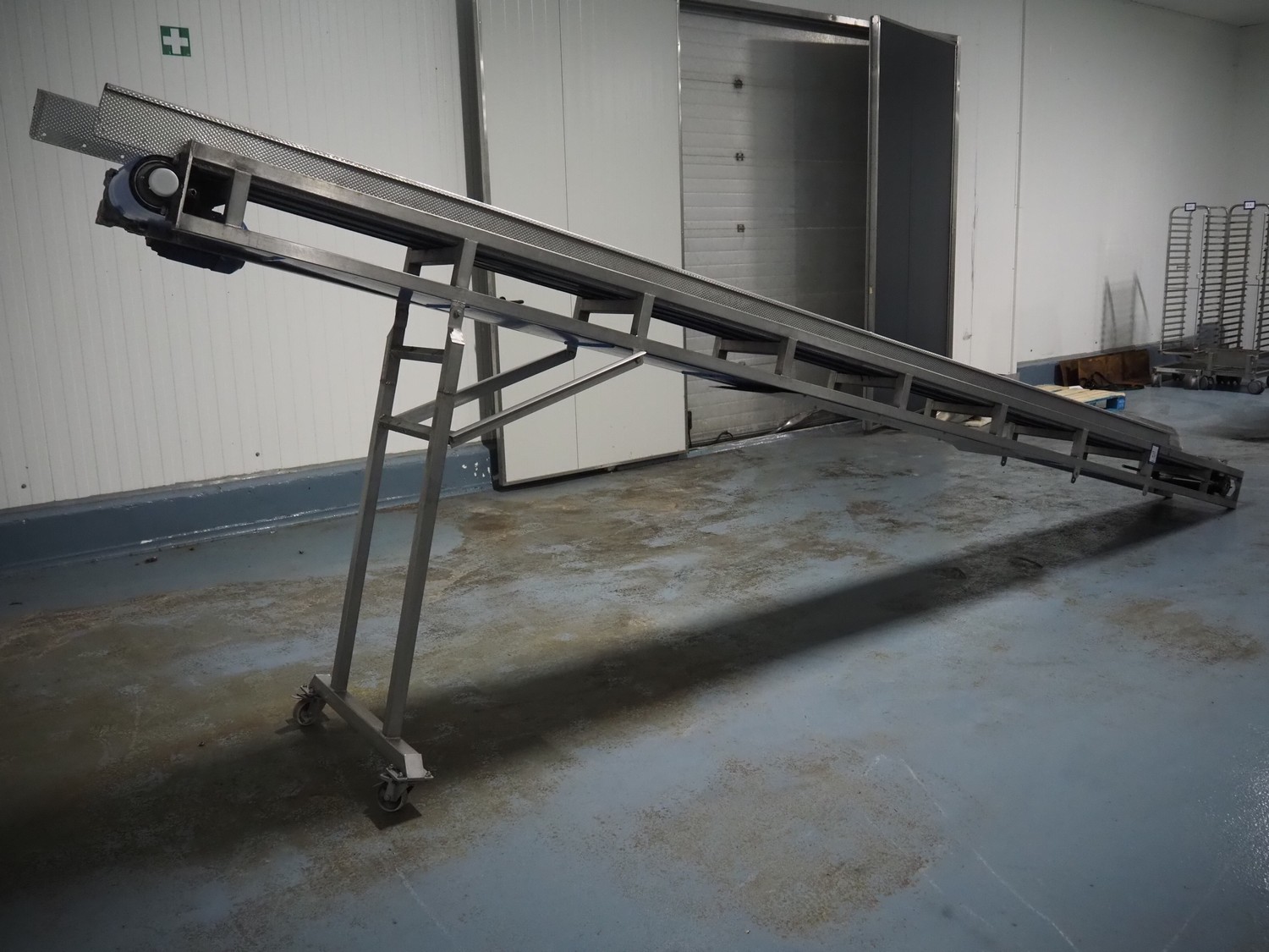 Transport belt, s/s frame, plastic belt, belt width: 305 mm, total dimensions: 5700 mm x 600 mm x 1700 mm.