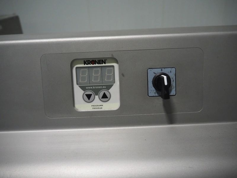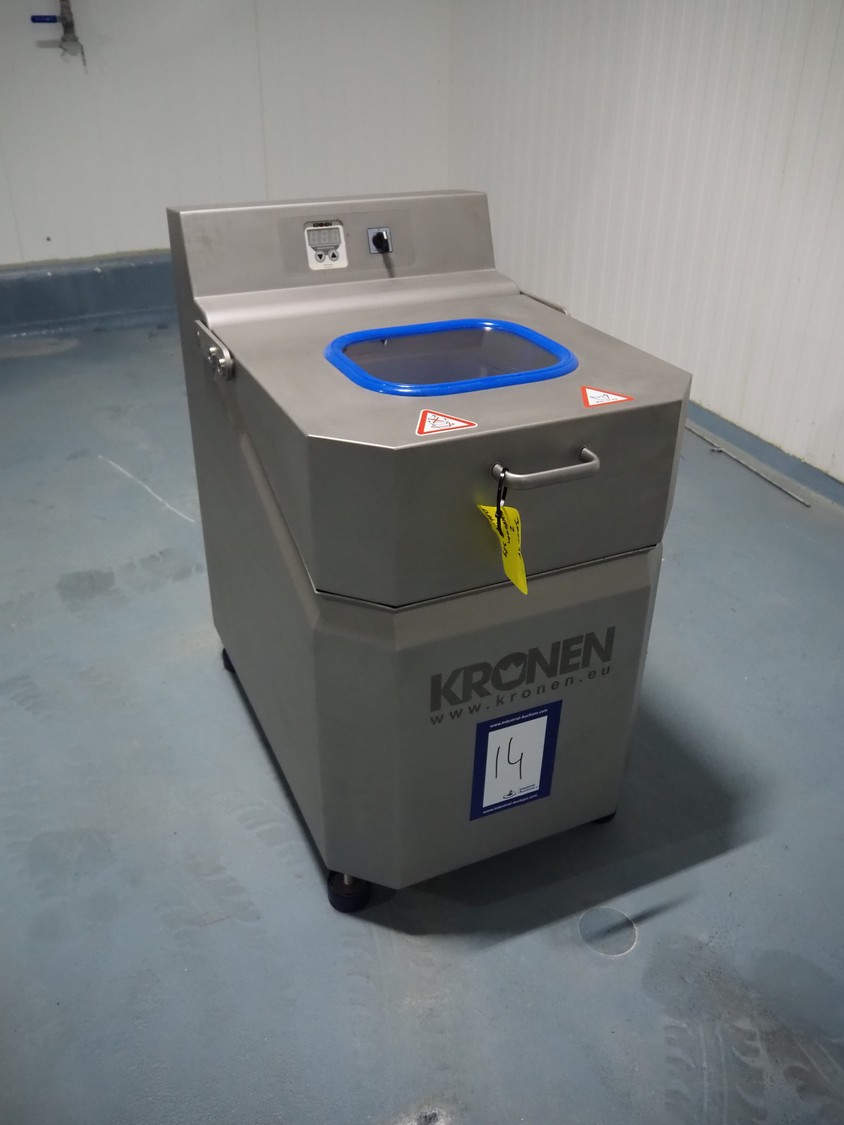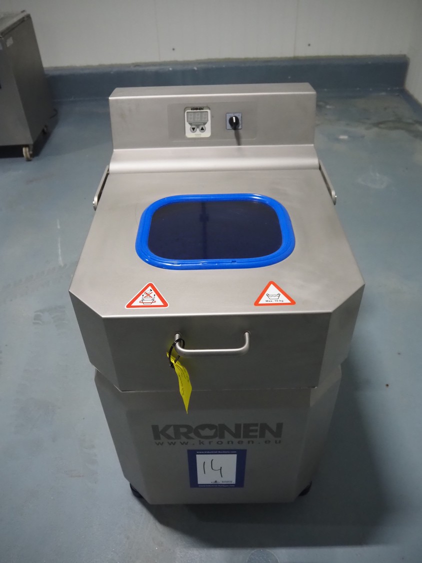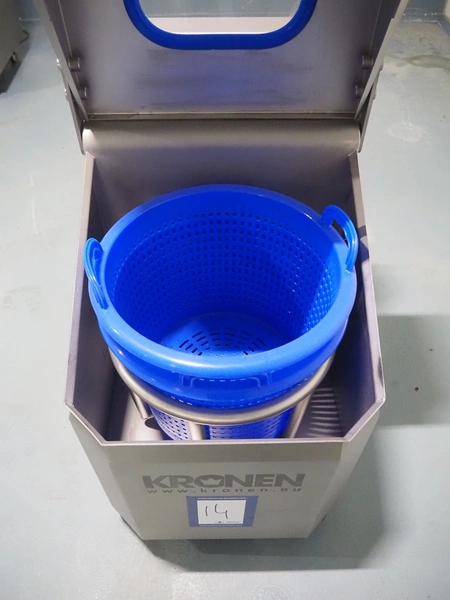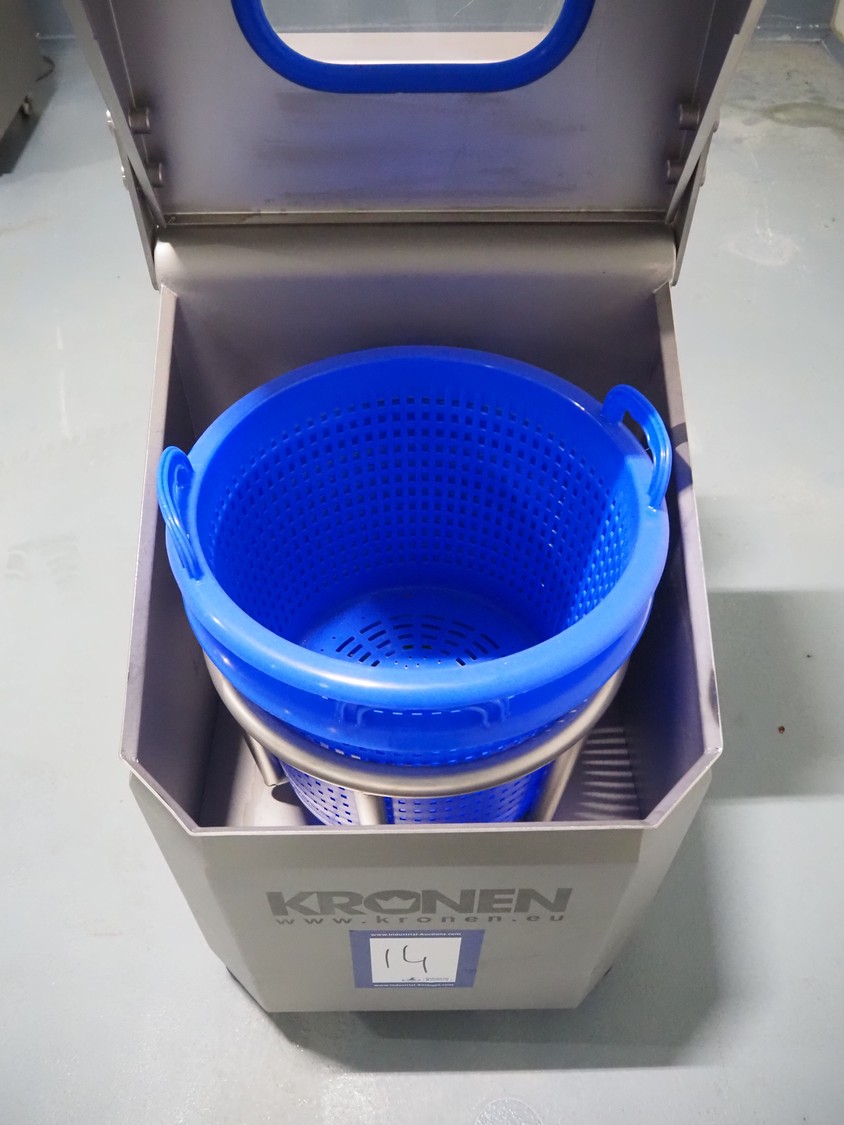 Kronen lettuce and vegetable spinner, type: KS-100 PLUS, serial number: 396, year of construction: 2021, 230 V, 1 Ph, 50/60 Hz, 0.8 kW, maximum capacity: 10 kg, inside dimensions: Ø 420 mm x 360 mm, total dimensions: 950 mm x 600 mm x 1000 mm.