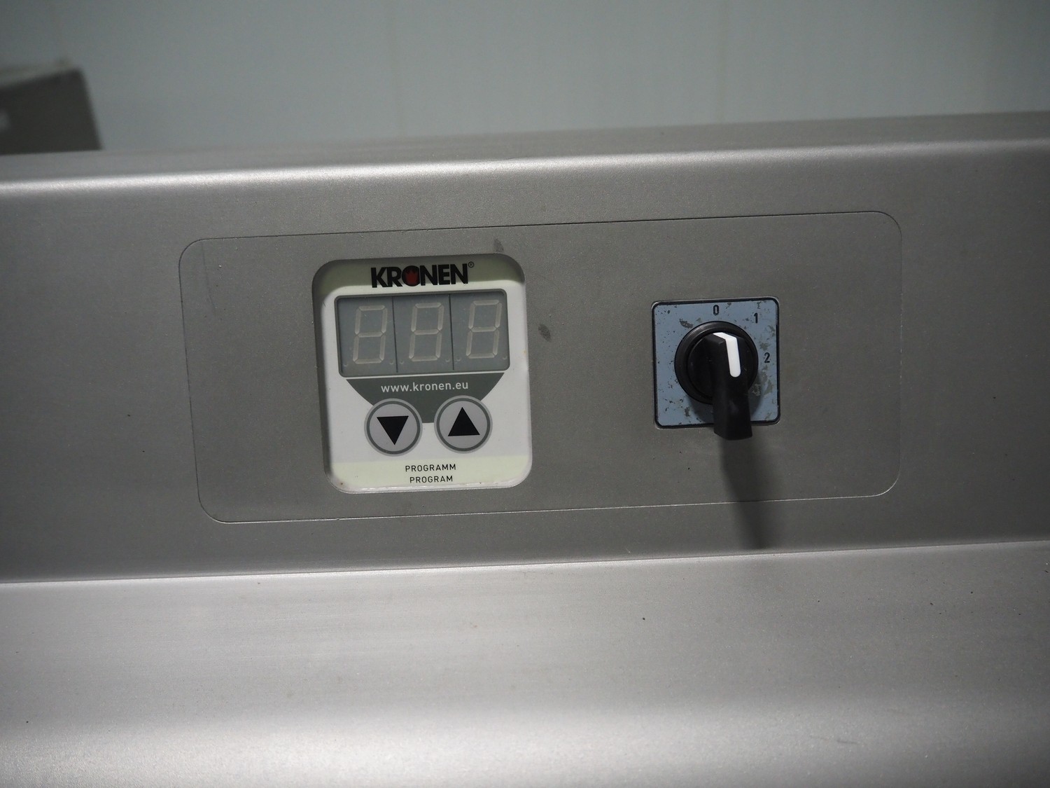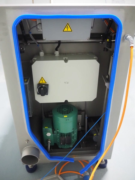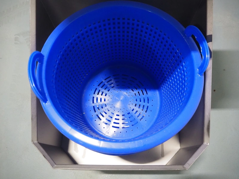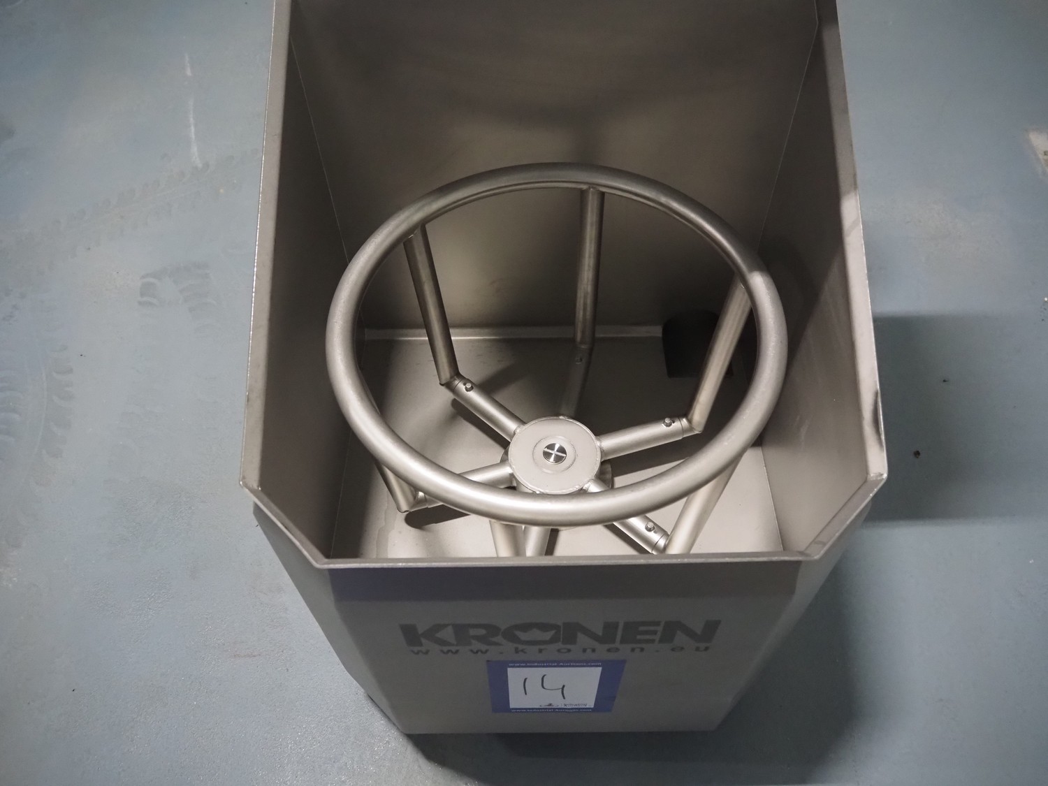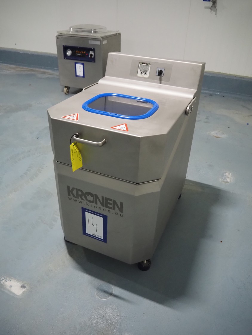 Kronen lettuce and vegetable spinner, type: KS-100 PLUS, serial number: 396, year of construction: 2021, 230 V, 1 Ph, 50/60 Hz, 0.8 kW, maximum capacity: 10 kg, inside dimensions: Ø 420 mm x 360 mm, total dimensions: 950 mm x 600 mm x 1000 mm.