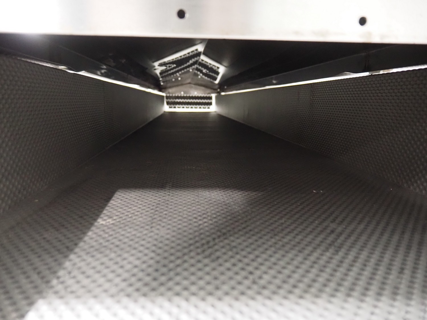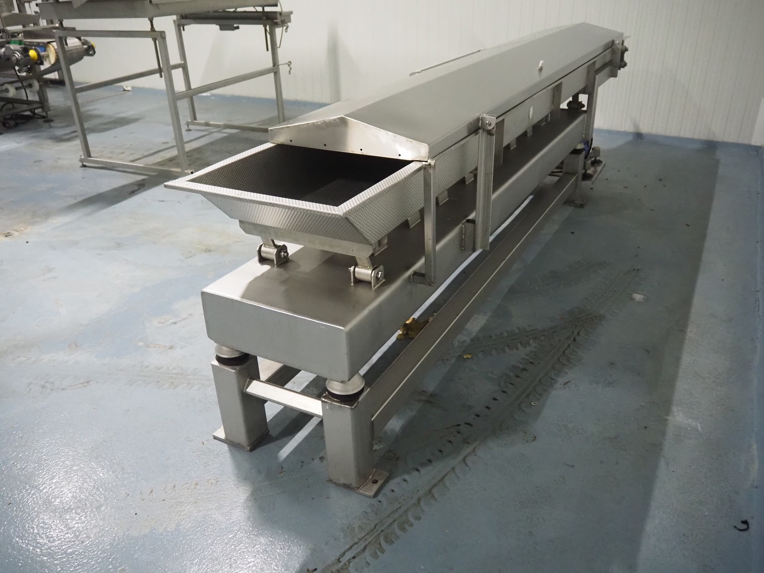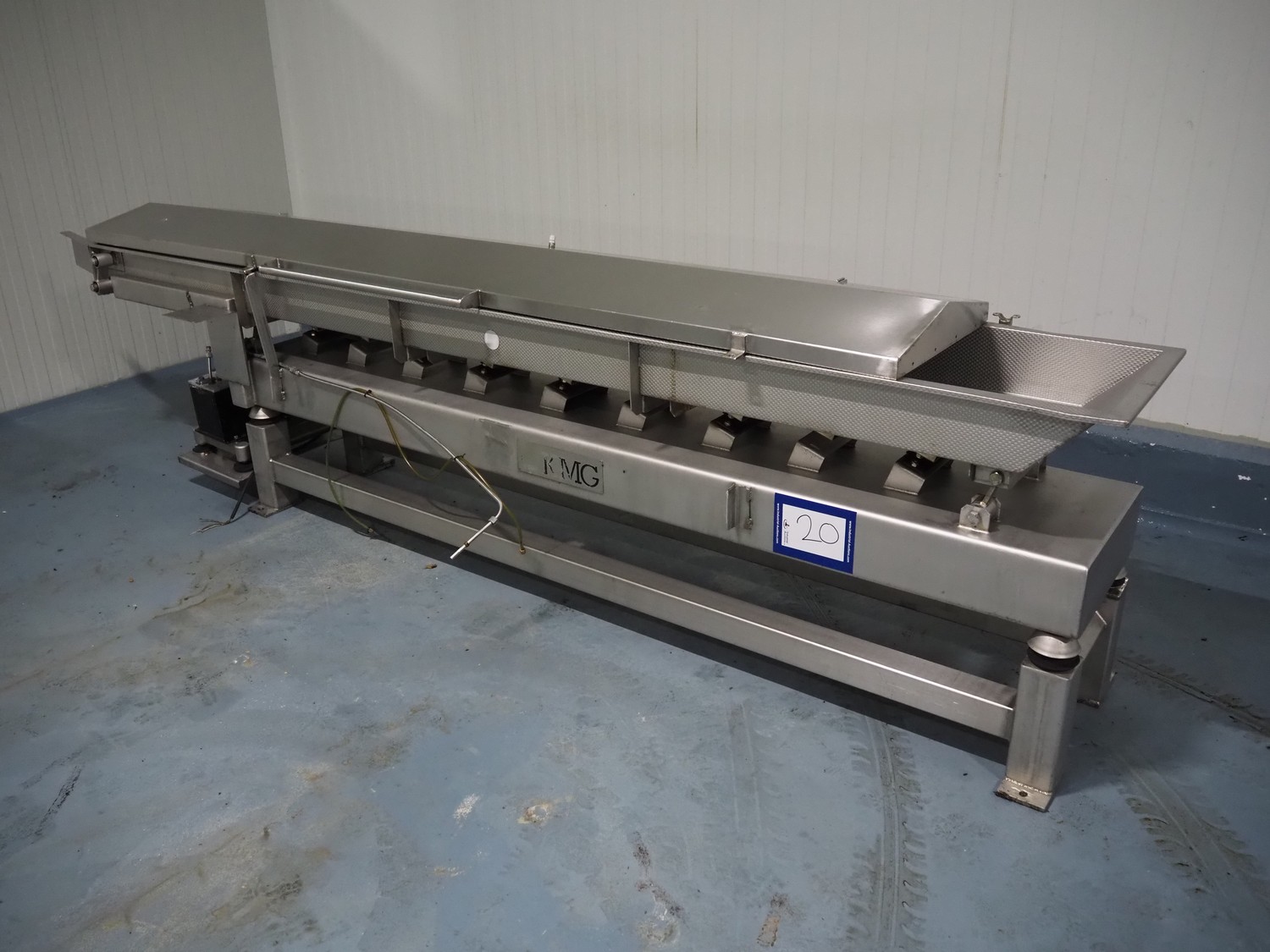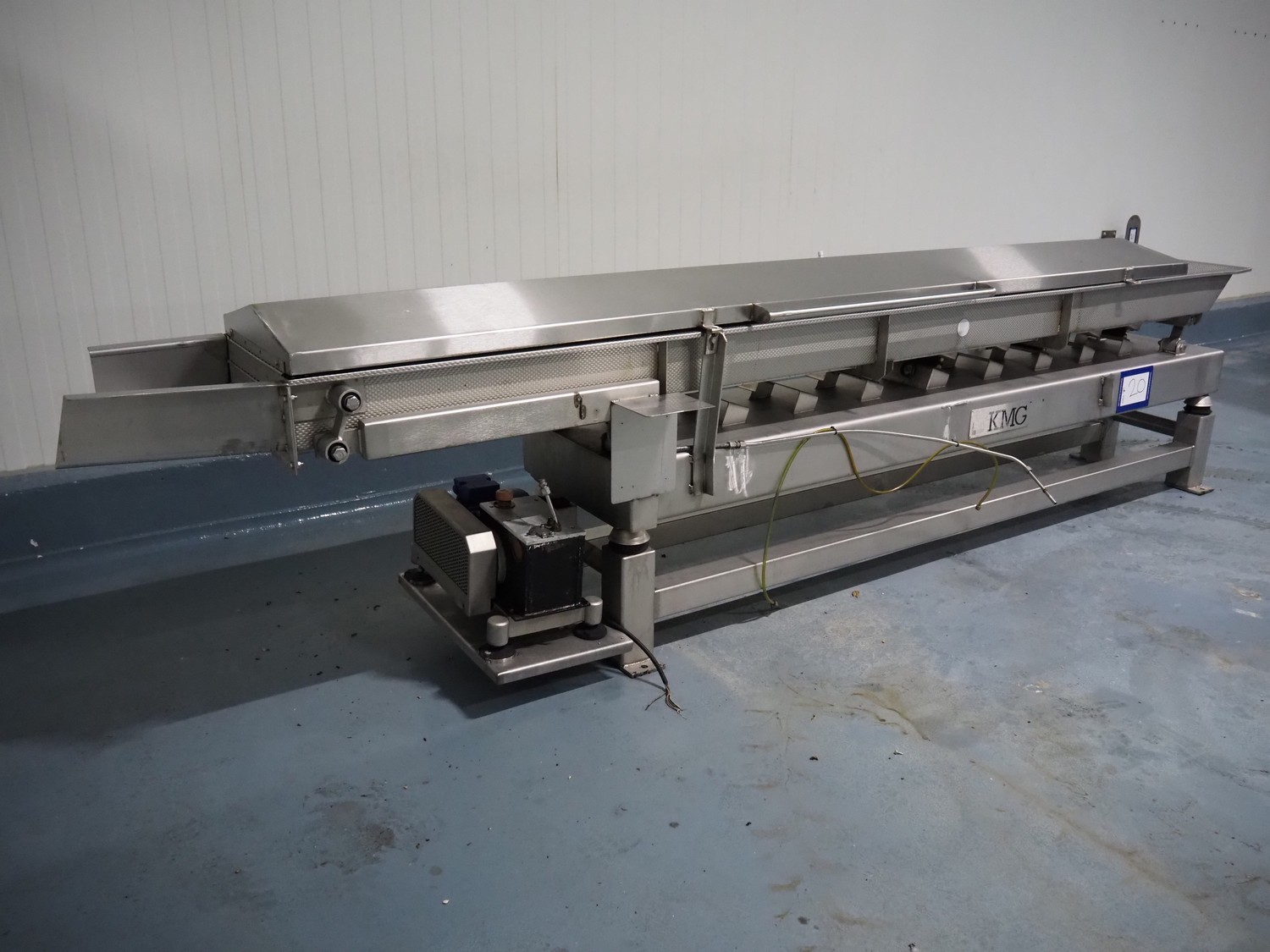 KMG s/s vibrating gutter, gutter width: 450 mm, total dimensions: 3850 mm x 650 mm x 950 mm.