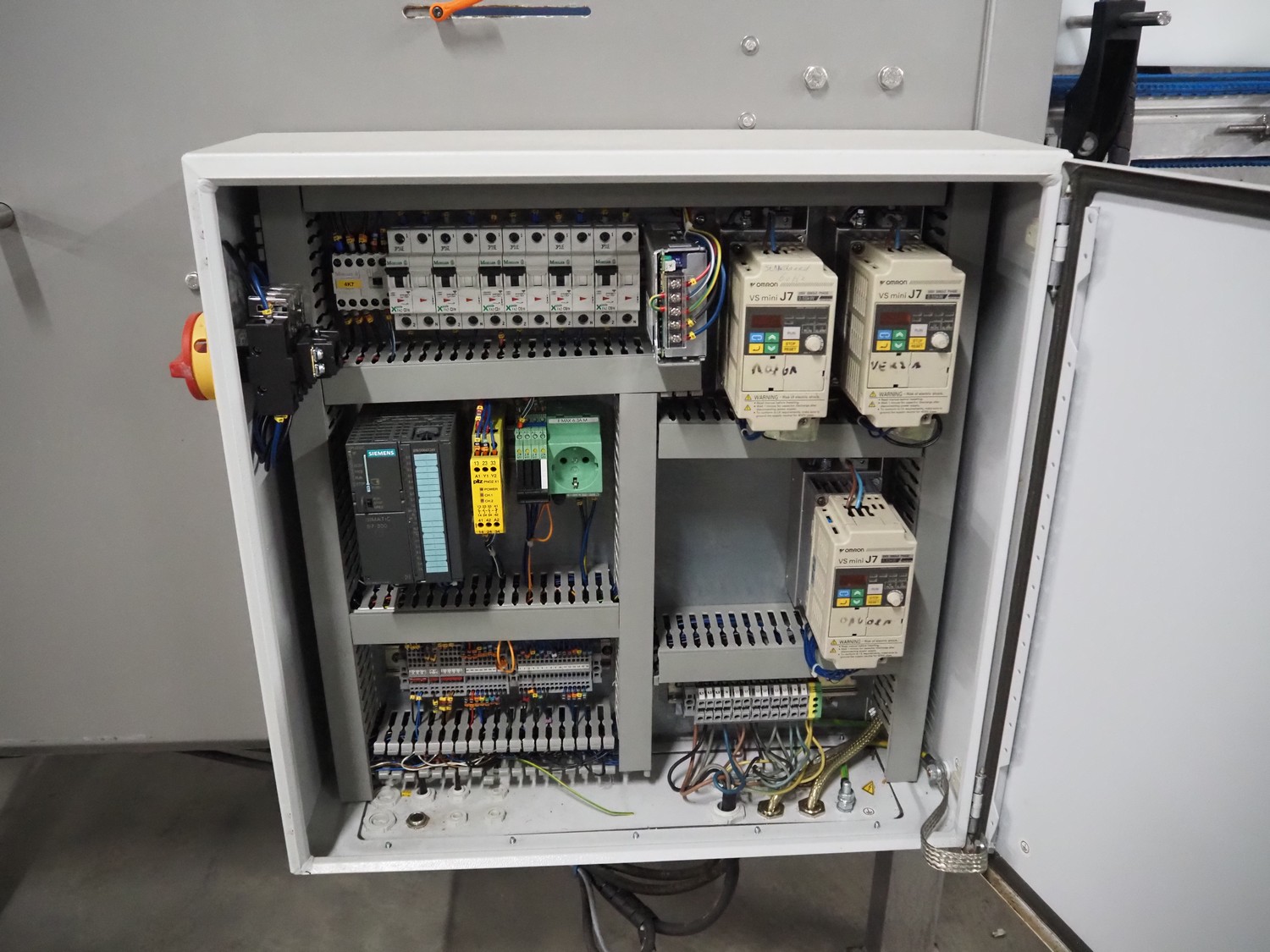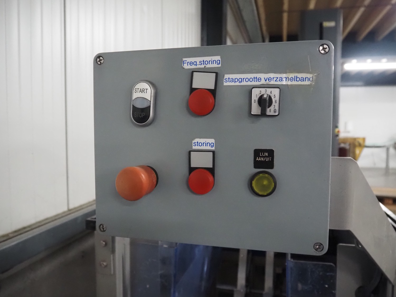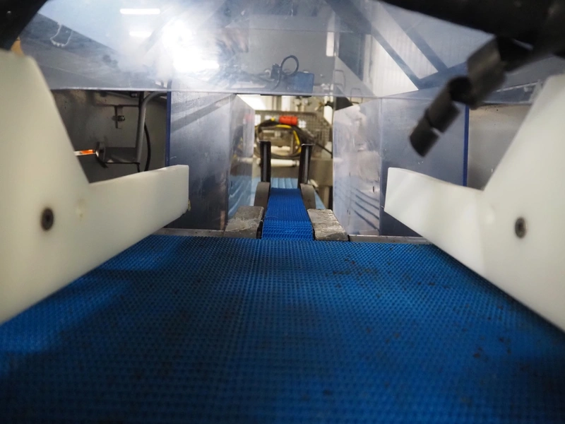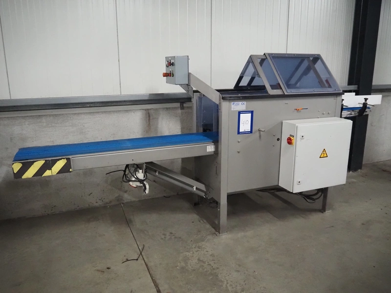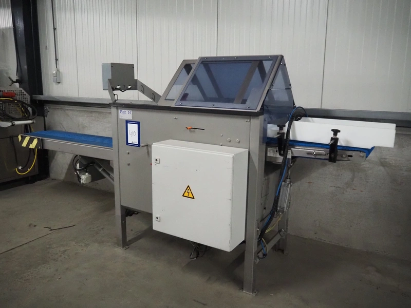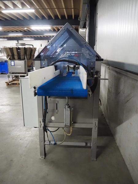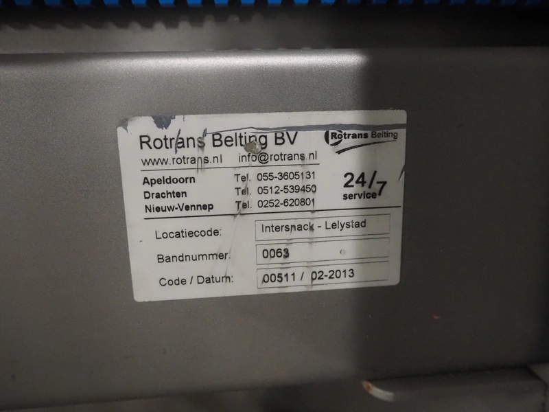 Blueprint Automation tilting device for pouches, type: FBC01, serial number: V1081, year of construction: 06-2006, 400 V, 3 Ph, 50 Hz, plastic belts, belt width: 360 mm and 60 mm, working width: 320 mm, total dimensions: 3600 mm x 1200 mm x 1600 mm.