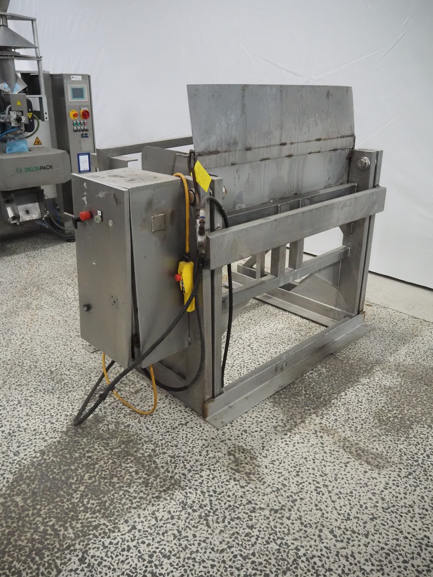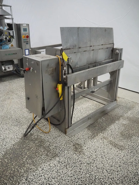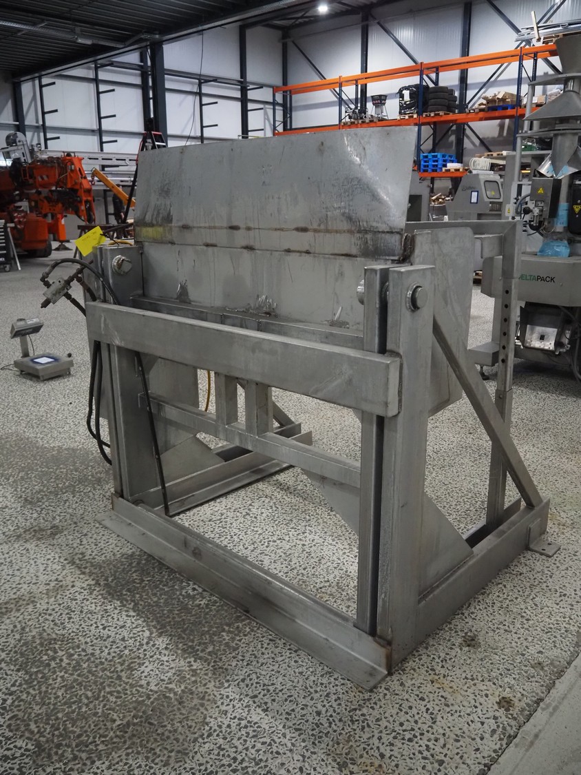 S/s tilting device for pallet boxes, clearance: 1200 mm x 1000 mm x 1000 mm, total dimensions: 1900 mm x 1200 mm x 1550 mm.