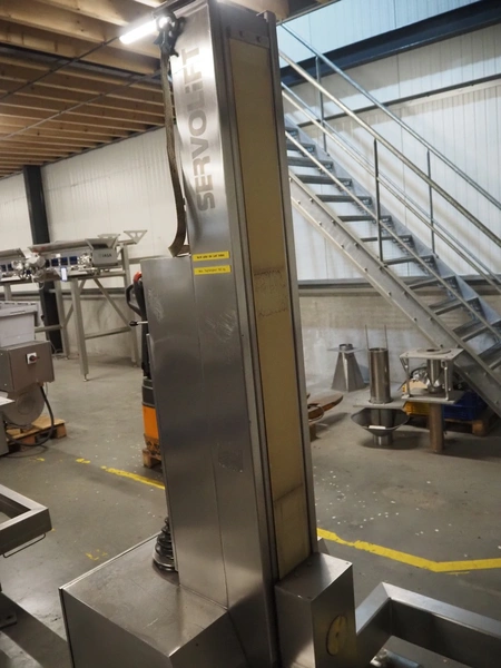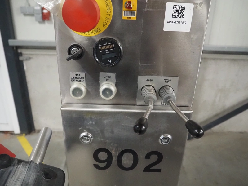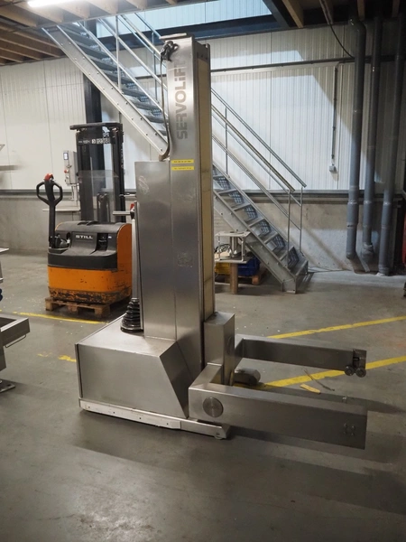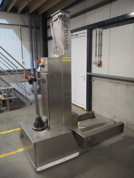 Servolift GmbH lifter for barrels, type: mob. Fass-Hubsäule, serial number: 10905, year of construction: 2004, capacity: 160 kg, lifting height: 2300 mm, total dimensions: 1850 mm x 800 mm x 2300 mm.