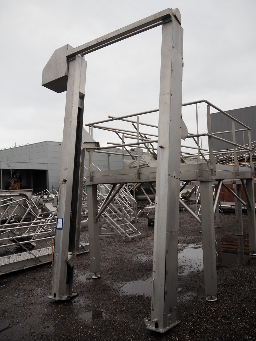 Boldt Systems lifter for pallet boxes, year of construction: 2000, lifting height: 2650 mm, dimensions lifter: 2800 mm x 1100 mm x 4600 mm, dimensions lifting bin: 1900 mm x 1500 mm x 1200 mm.