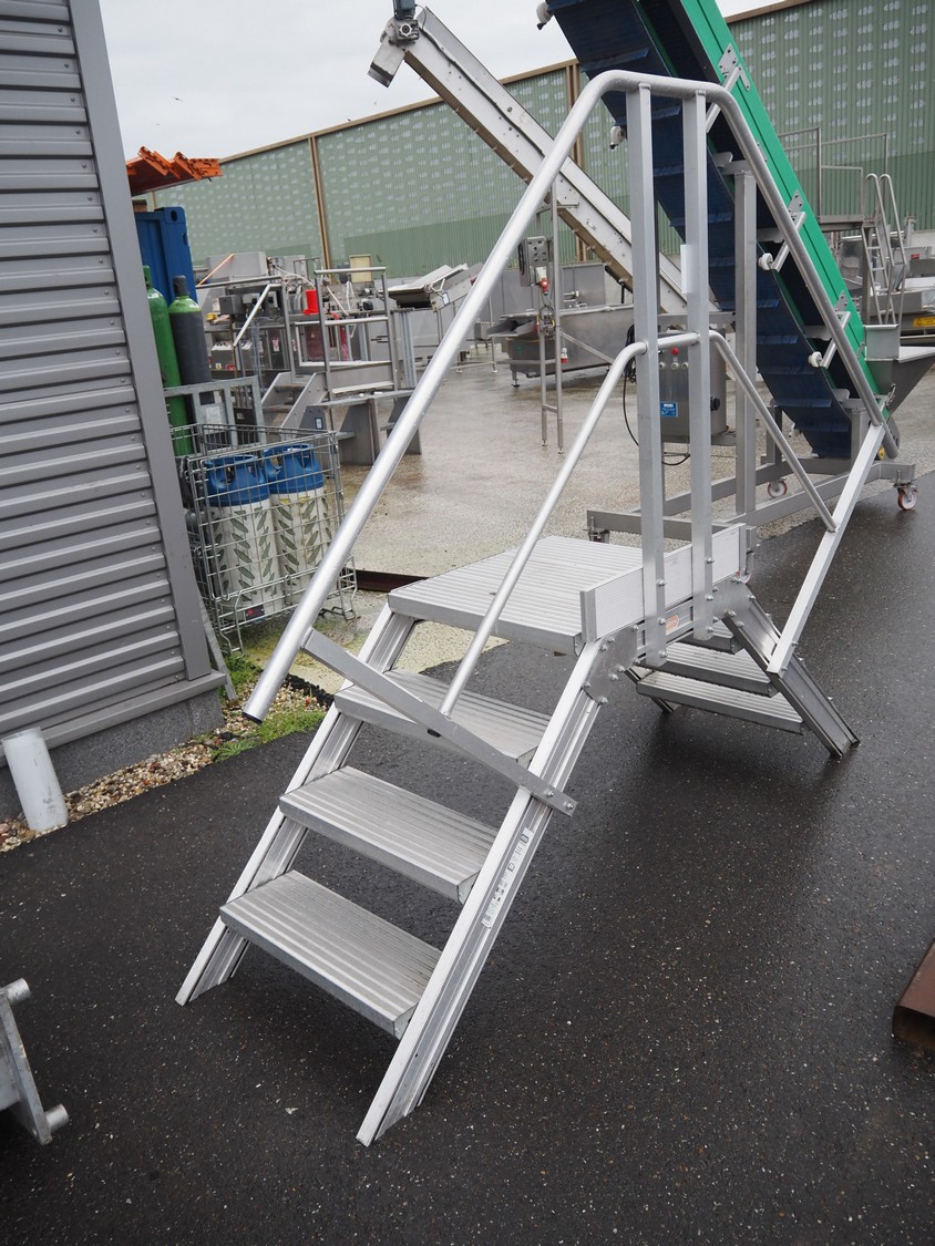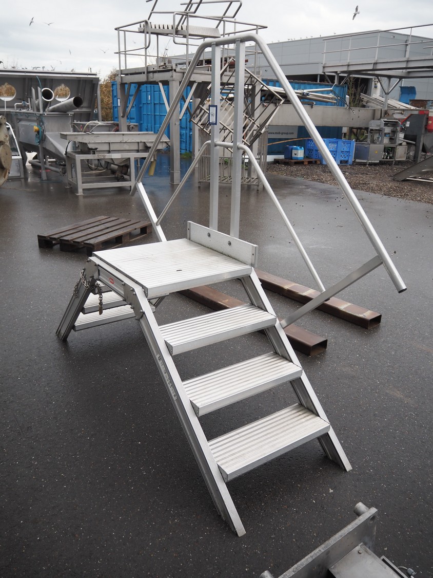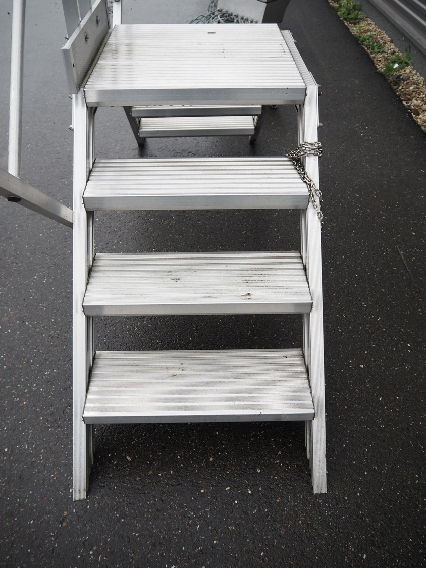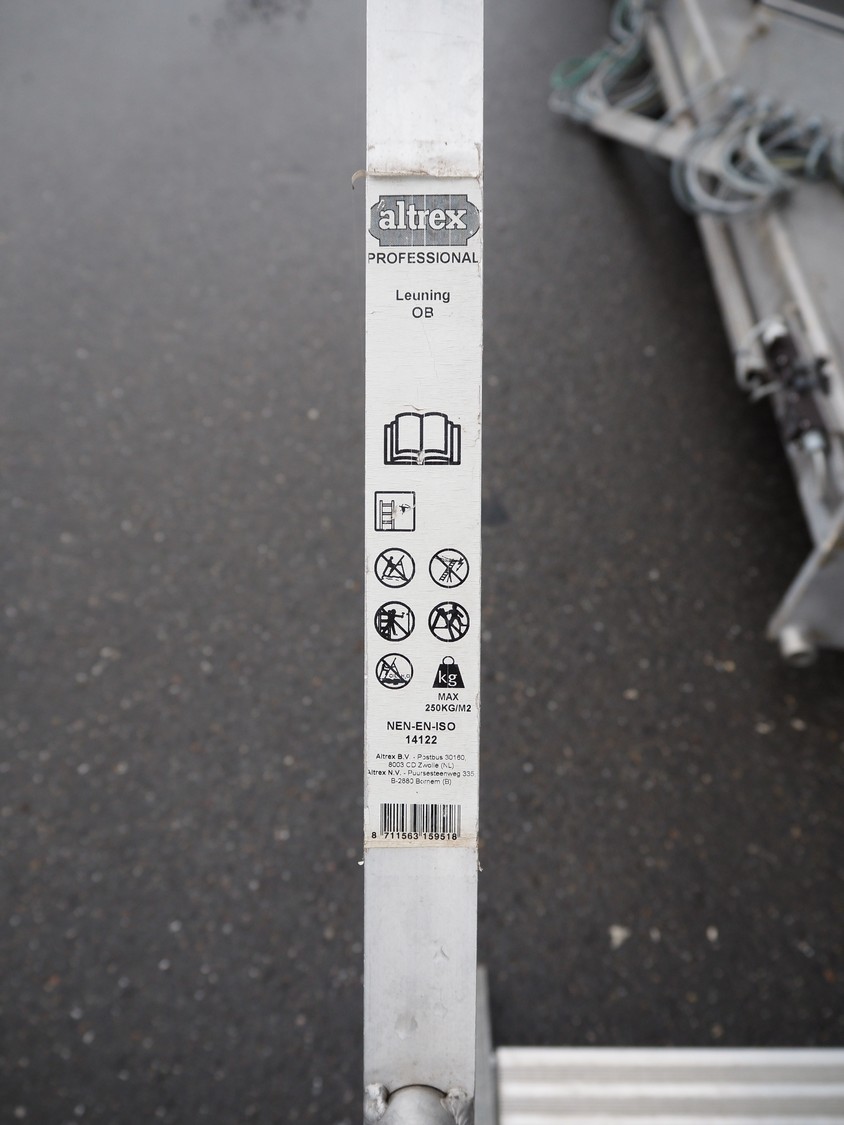 Altrex aluminium platform, maximum capacity: 250 kg, working height: 800 mm, total dimensions: 2300 mm x 700 mm x 1900 mm.