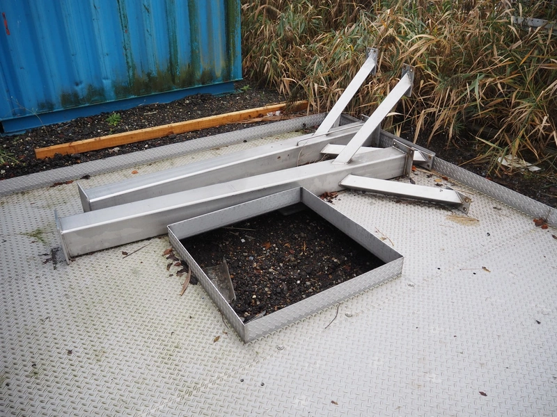 S/s platform with rack for multihead weigher baskets, dimensions: 3300 mm x 2800 mm x 2500 mm.