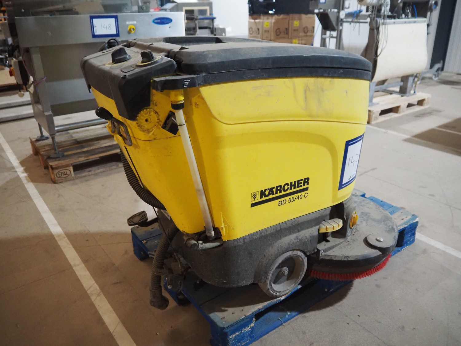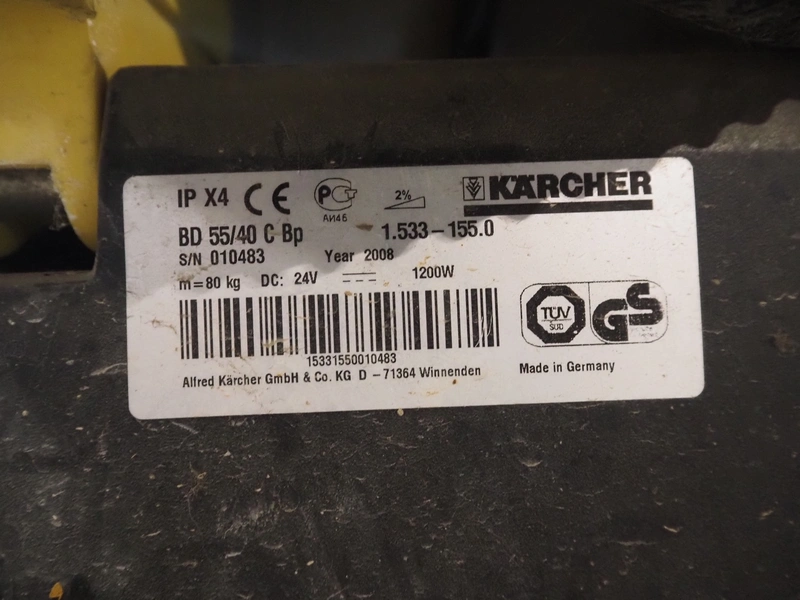 Kärcher floor scrubbing machine, model: BD 55/40 C Bp, serial number: 010483, year of construction: 2008, weight: 80 kg, dimensions: 1000 mm x 700 mm x 900 mm.