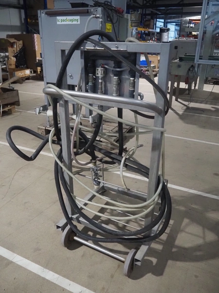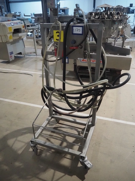Mobile s/s soap mixing unit, dimensions: 600 mm x 650 mm x 1400 mm.