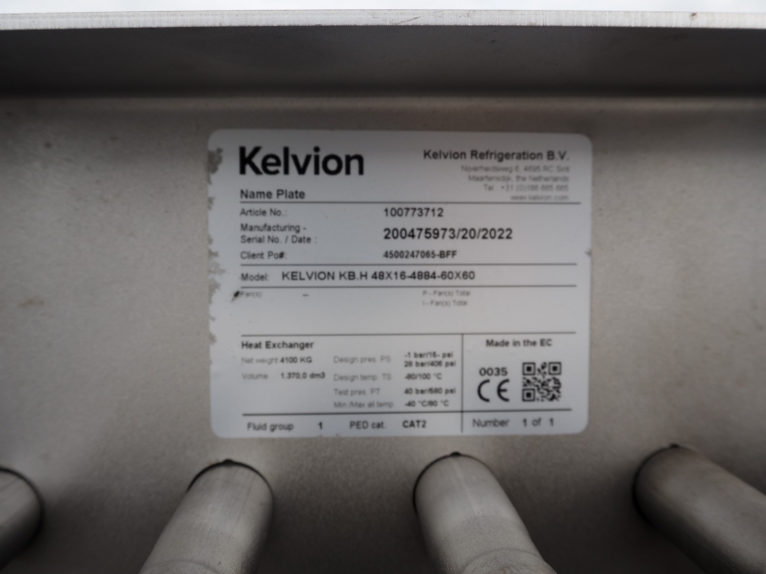 Kelvion chiller, model: KB.H 48x16-4884-60X60, serial number: 200475973, year of construction: 2022, volume: 1370 dm³, dimensions: 5600 mm x 1200 mm x 1800 mm.