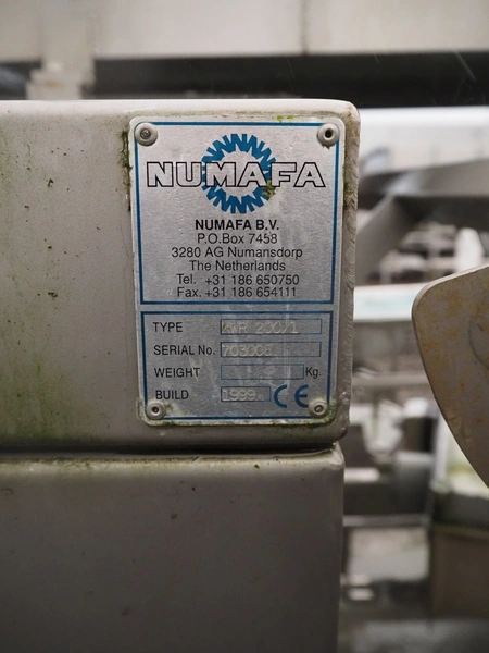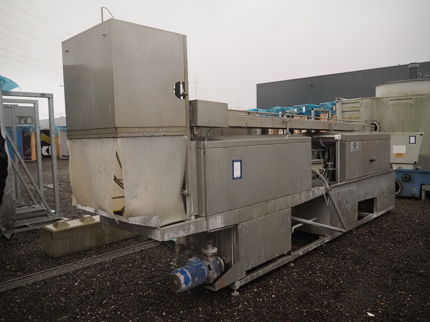 Numafa crate washer, type: HWR 200/1, serial number: 703008, year of construction: 1999, clearance: 750 mm x 600 mm, total dimensions: 6000 mm x 1600 mm x 2520 mm.