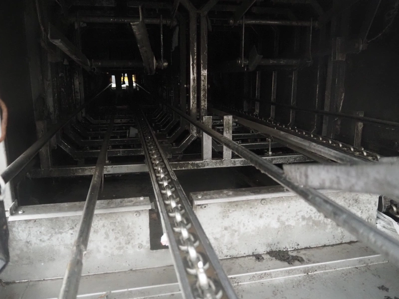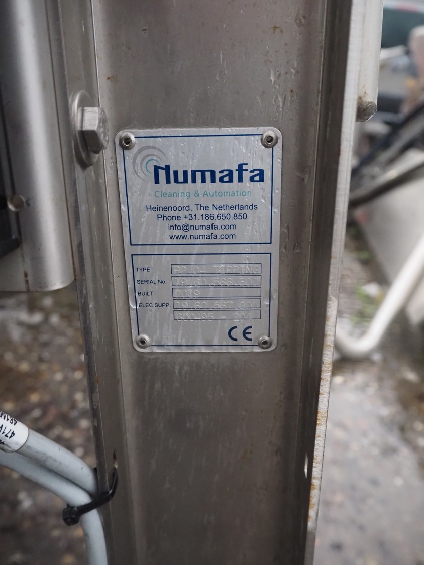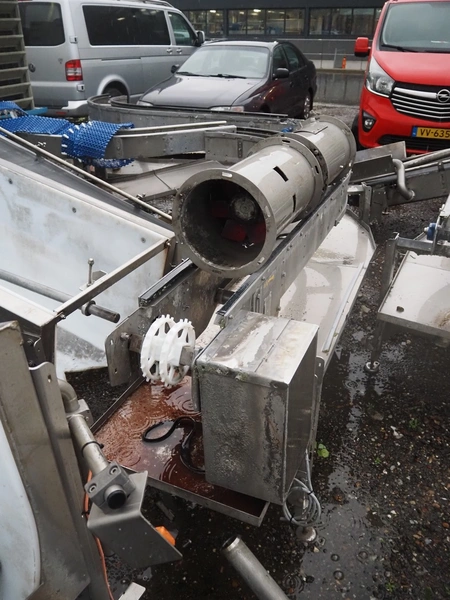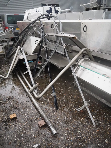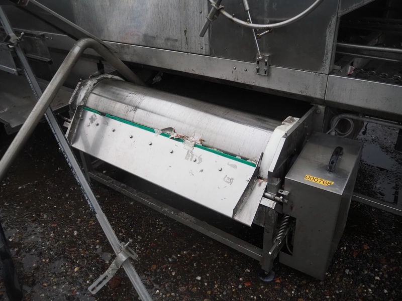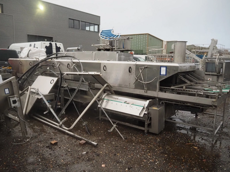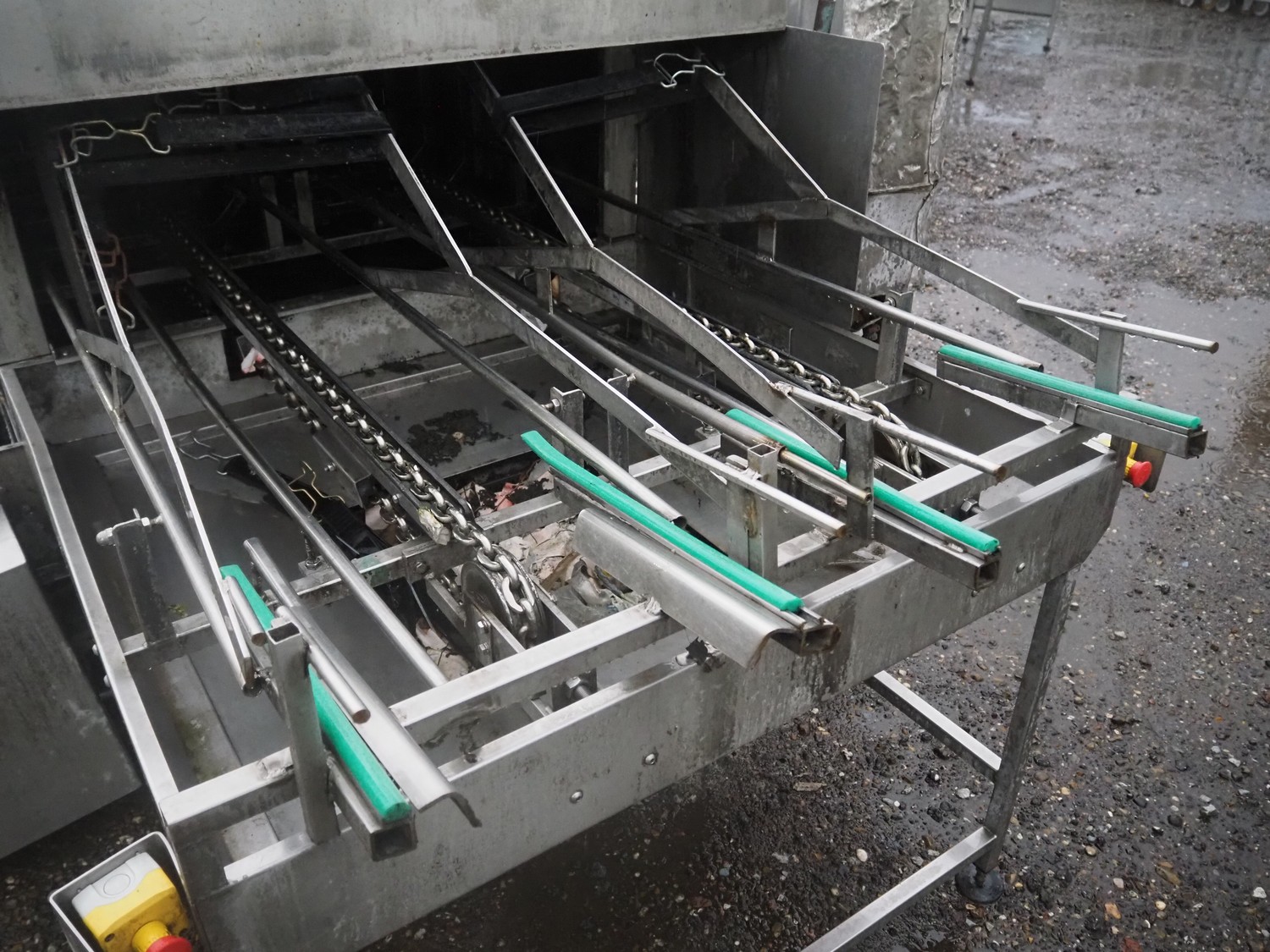 Mafo Holtkamp crate washer, double lane, clearance: (2x) 400 mm x 220 mm, total dimensions: 8300 mm x 2400 mm x 2050 mm.