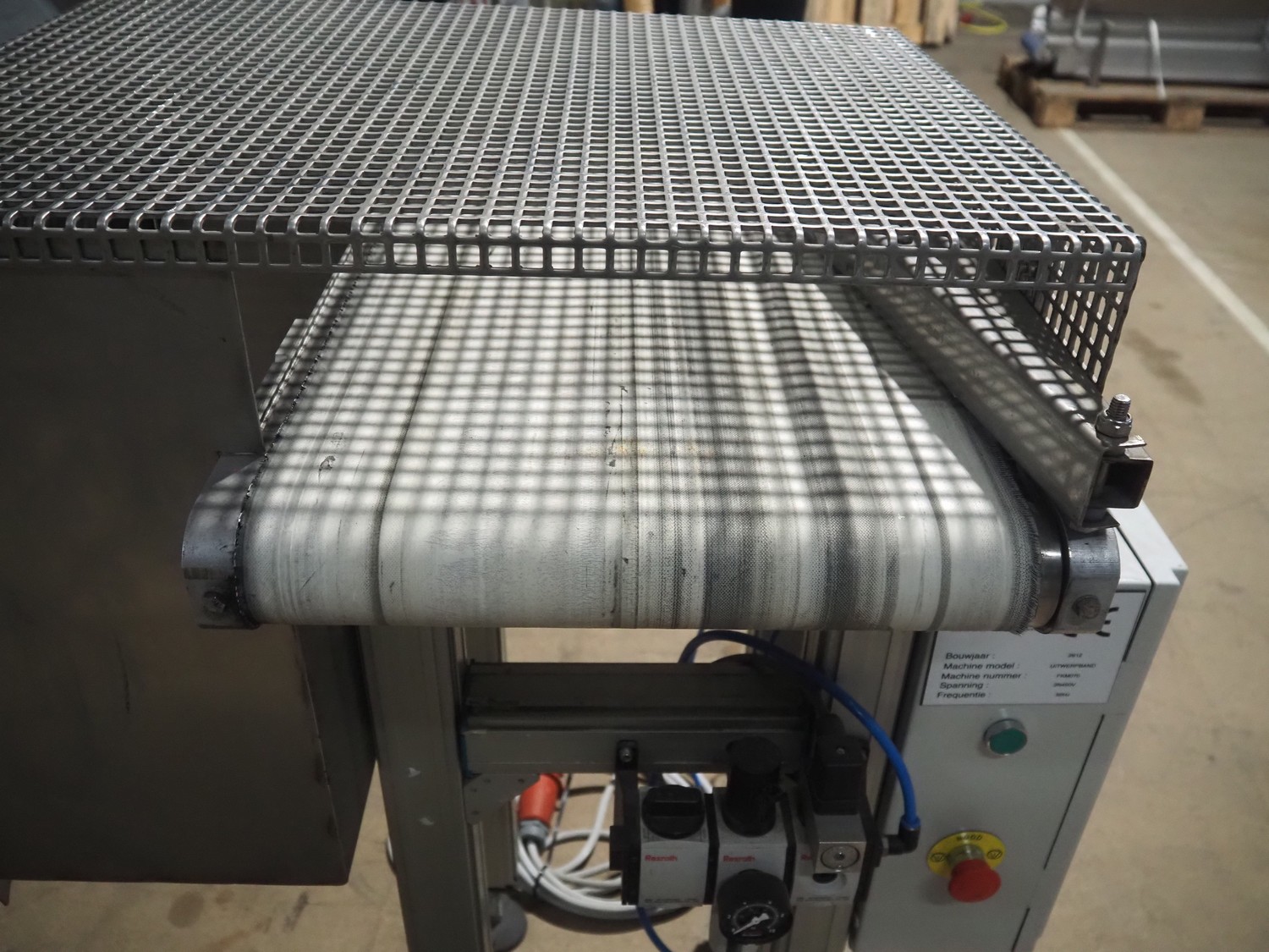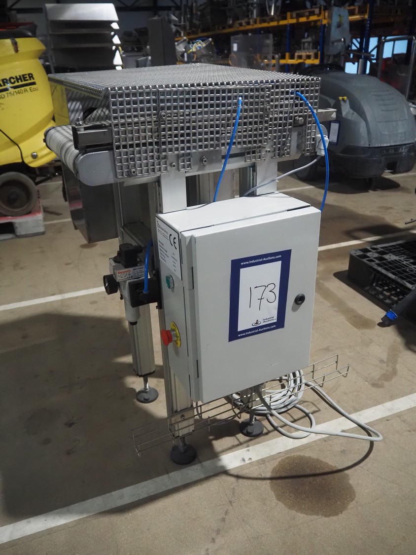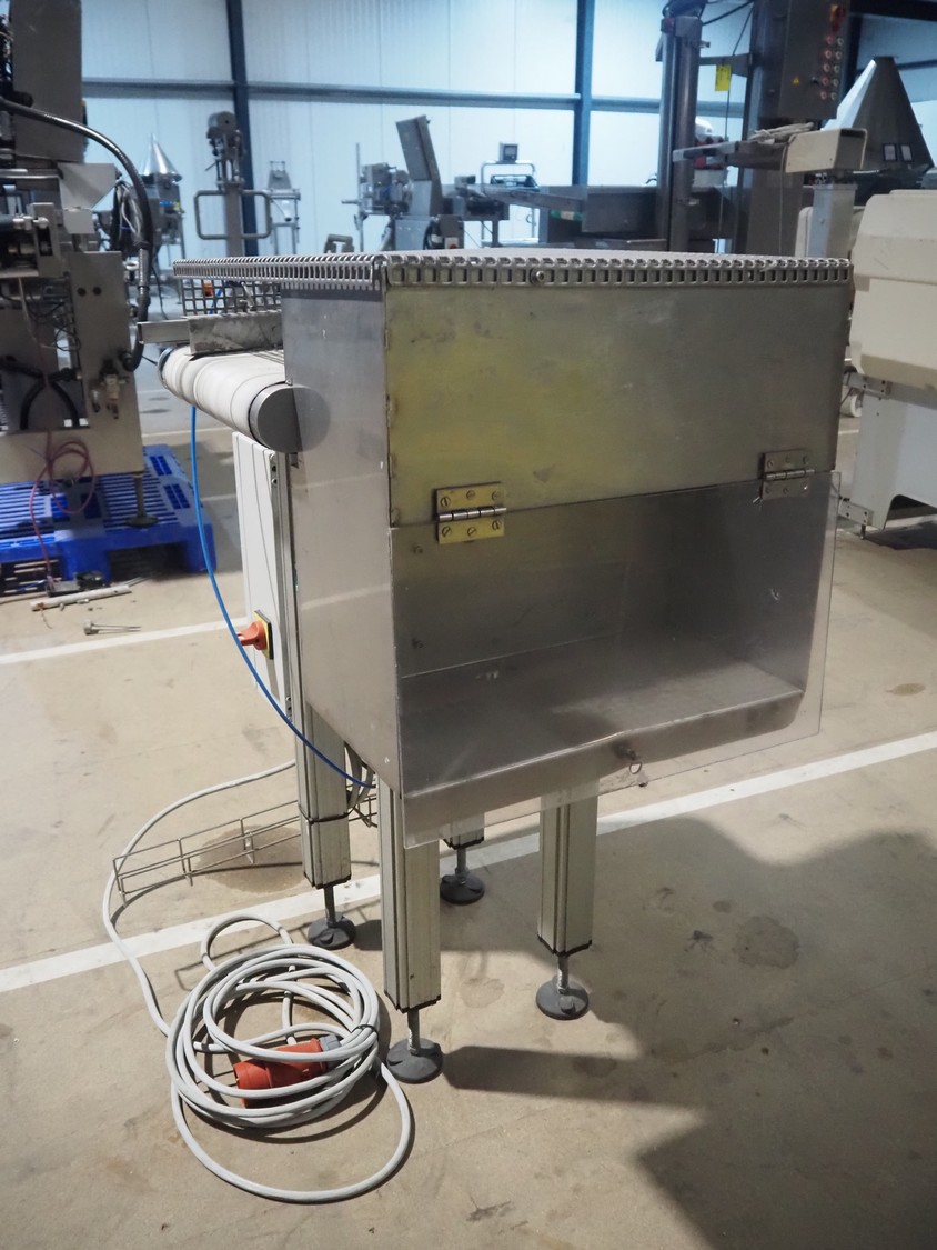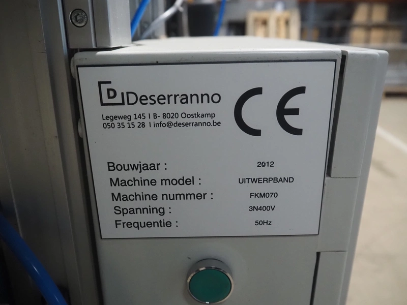 Deserranno rejecting belt, model: Uitwerpband, machine number: FKM070, year of construction: 2012, 400 V, 3 Ph, 50 Hz, plastic belt, belt width: 350 mm, total dimensions: 800 mm x 600 mm x 1060 mm.
