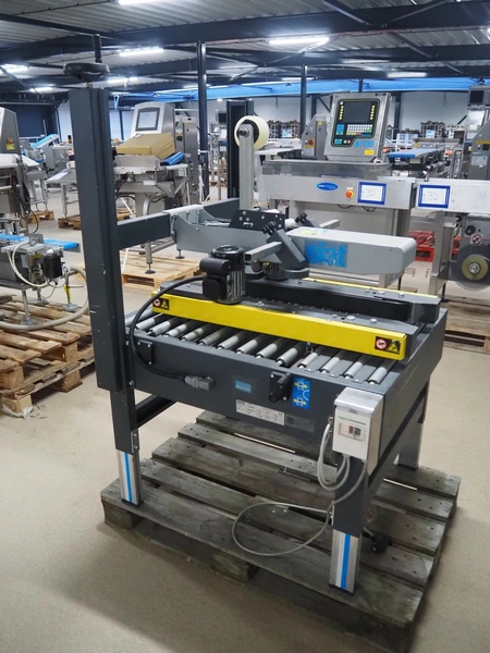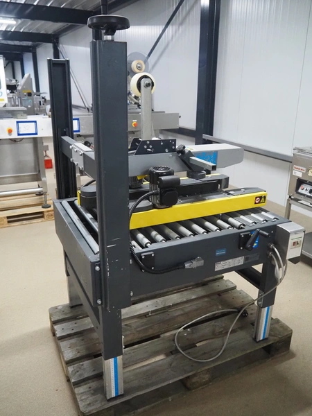Siat box closing machine, model: S8-S, serial number: 50266, year of construction: 2004, 220/240 V, 1 Ph, 50 Hz, 2 A, 0.18 kW, dimensions: 1000 mm x 900 mm x 1430 mm.