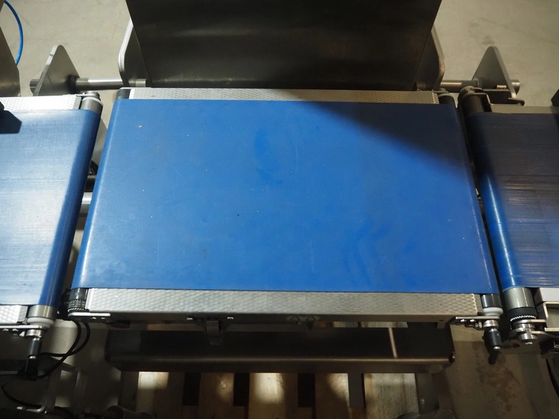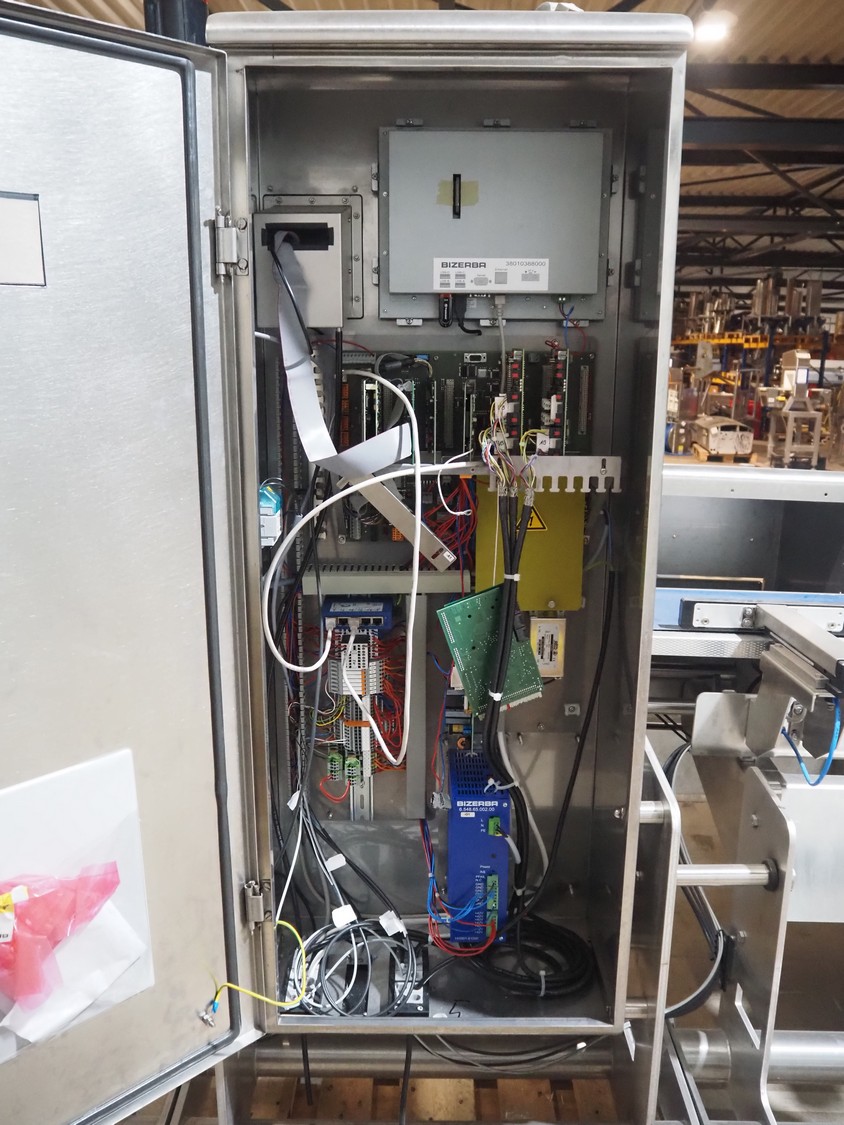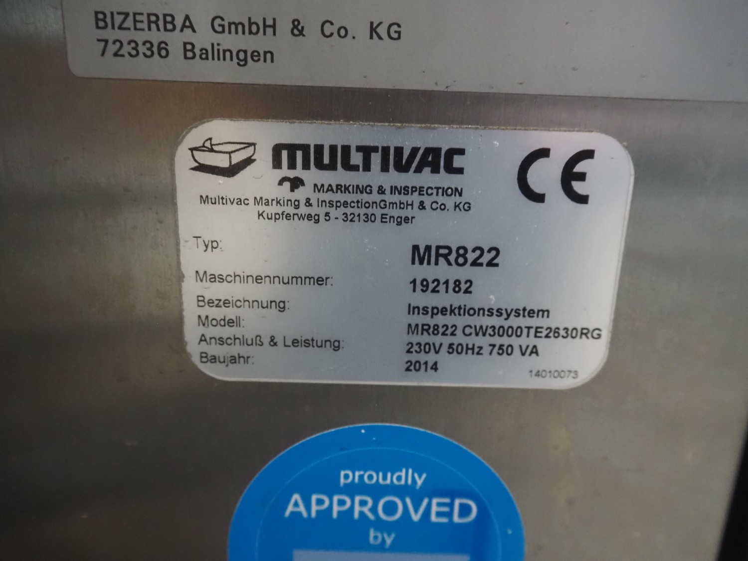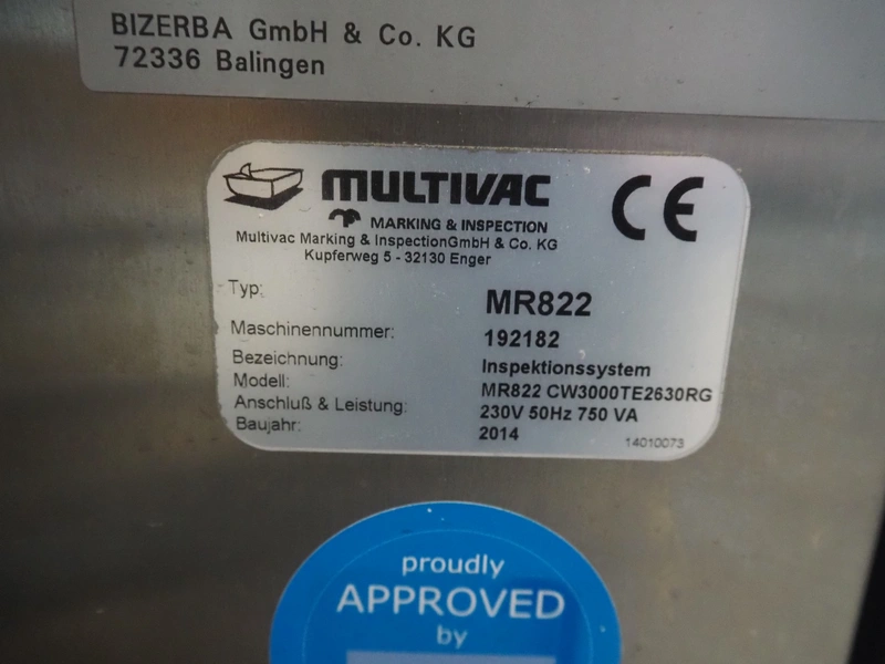Multivac metal detector with checkweigher and 2 rejectors, metal detector type: GLS, serial number: 11406016720-H, 110/230 V, 50/60 Hz, 0.36/0.18 A, clearance: 400 mm x 100 mm, type Bizerba checkweigher: MR8, number: 10996651, 120/220/240 V, 50/60 Hz, 5.0/3.0 A, maximum capacity: 1500/3000 g, minimum capacity: 50 g, plastic belts, belt width: 300 mm, total dimensions: 2650 mm x 1350 mm x 1820 mm.