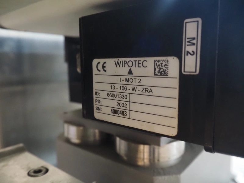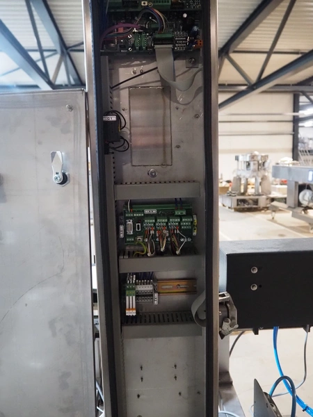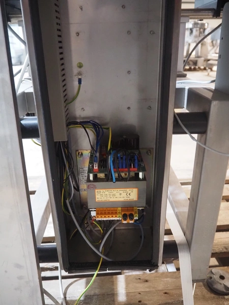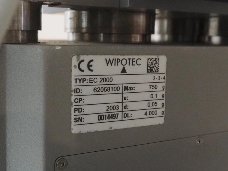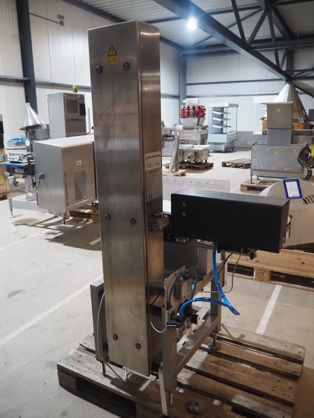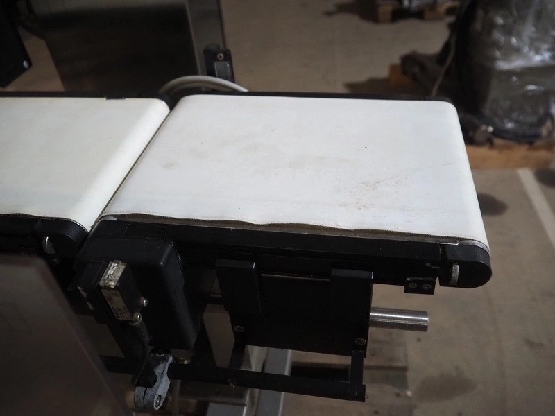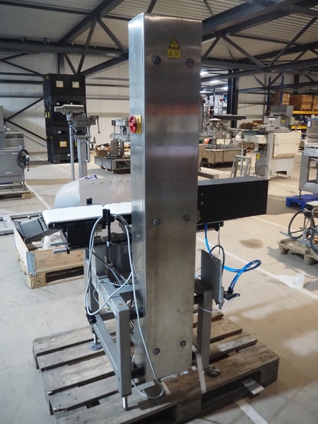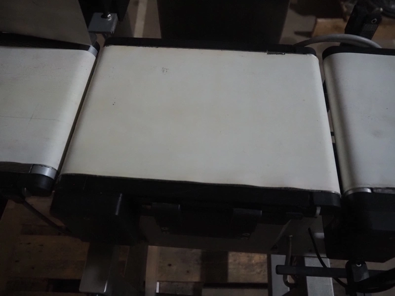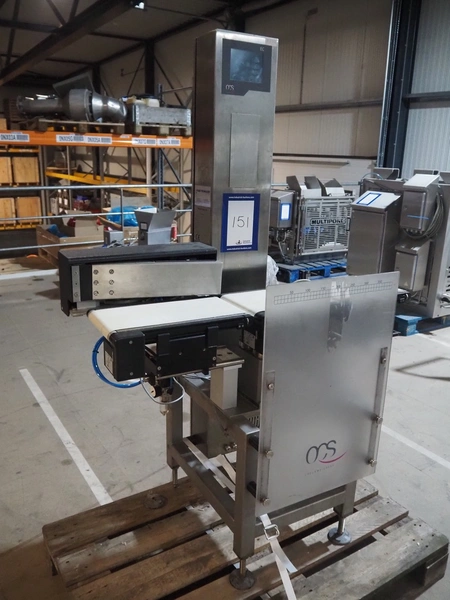 OCS checkweigher with rejector, type: EC, number: 1001821, year of construction: 2002, 230 V, 50 Hz, maximum capacity: 1500 g, e- 0.2 g, plastic belts, belt width: 175 mm, total dimensions: 1050 mm x 700 mm x 1650 mm.
