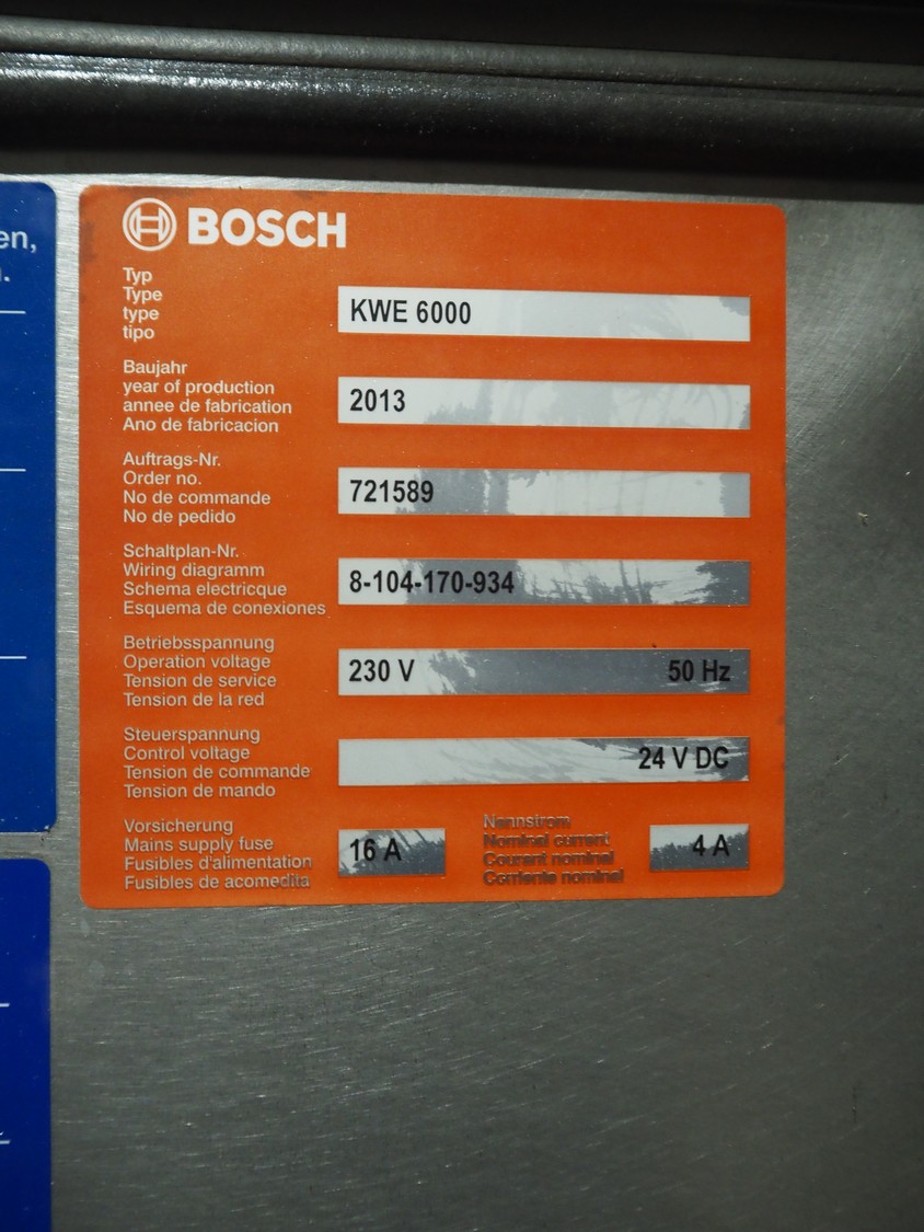 Bosch checkweigher, type: KWE 6000 A, year of construction: 2014, 230 V, 50 Hz, maximum weight: 600 gram, minimum weight: 100 gram, e=d= 0.5 gram, plastic belt, belt width: 250 mm, total dimensions: 1350 mm x 760 mm x 1350 mm. Incomplete.