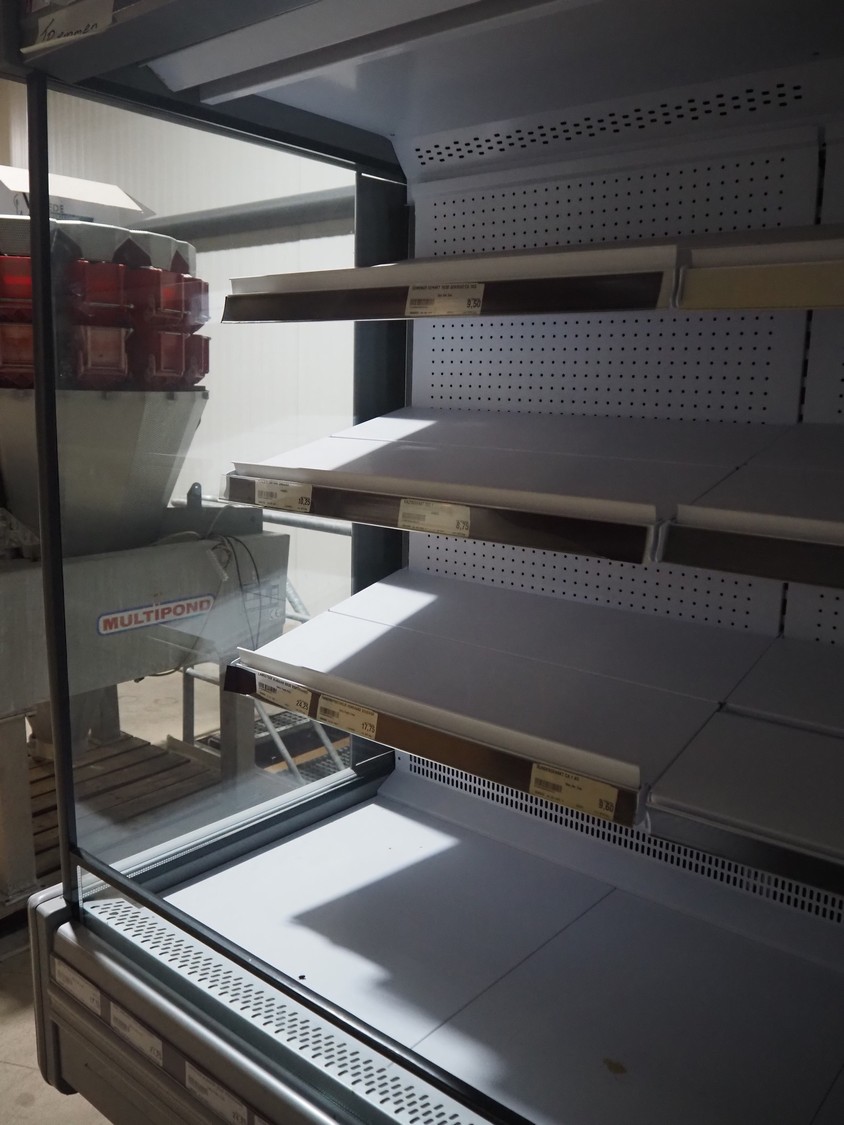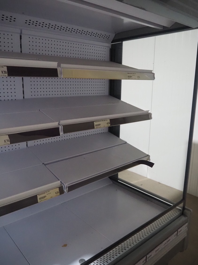 Refrigeration showcase, dimensions: 850 mm x 1550 mm x 1950 mm.