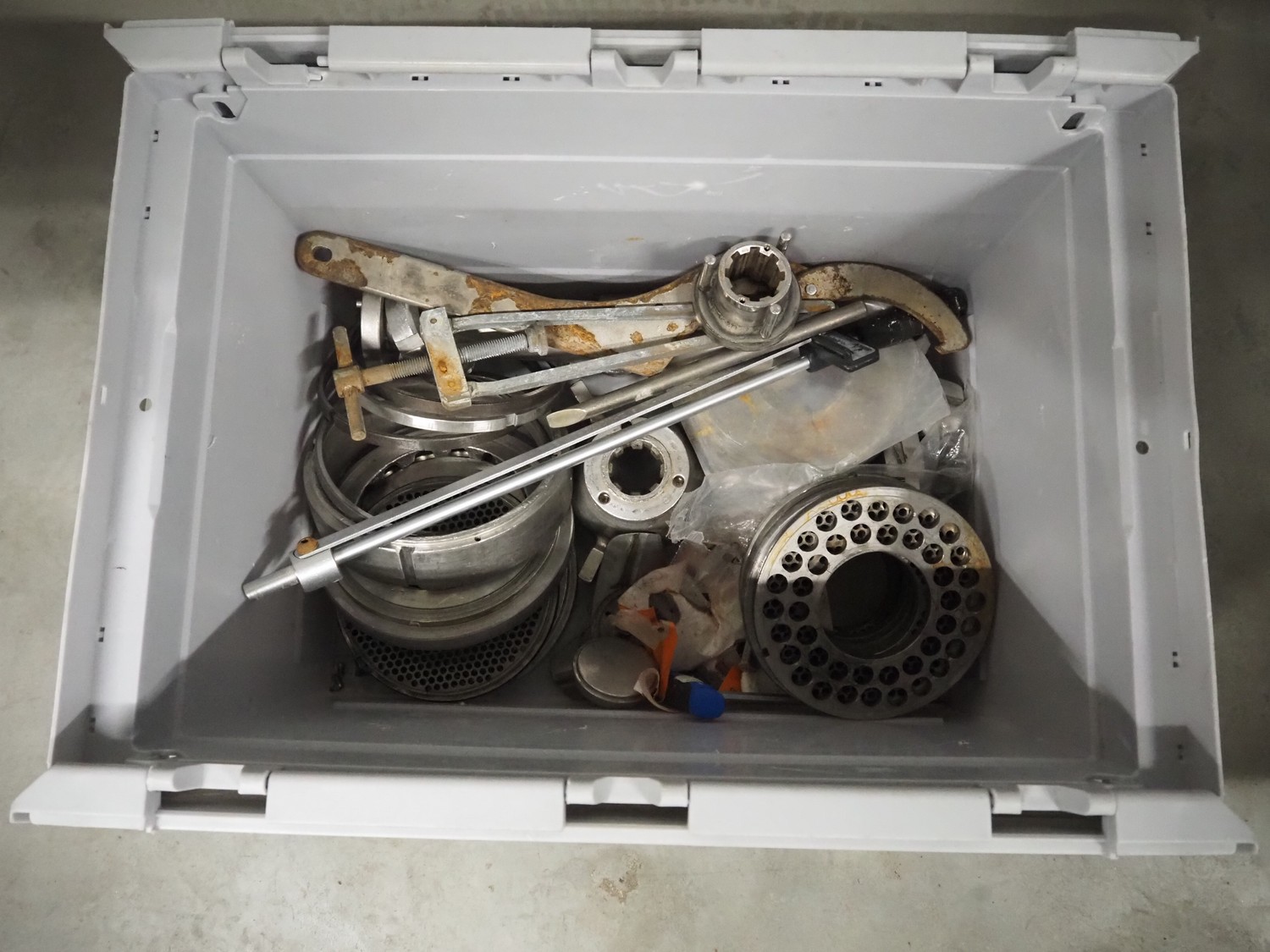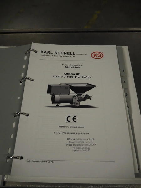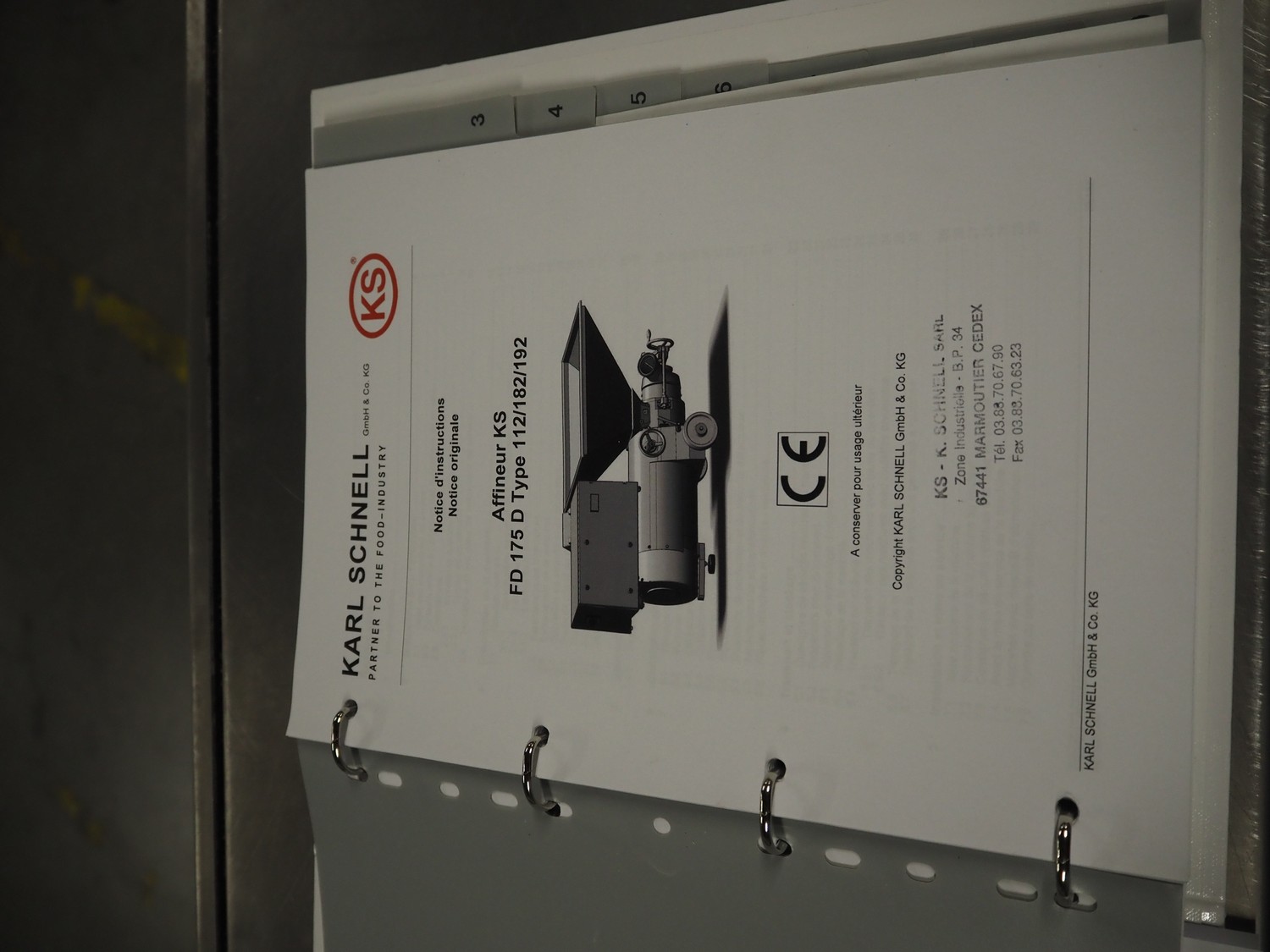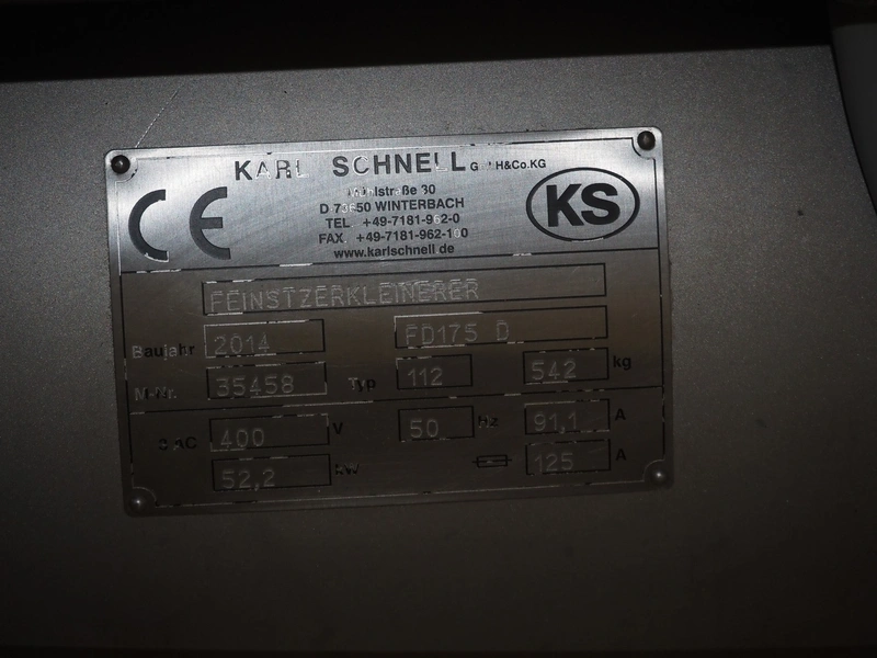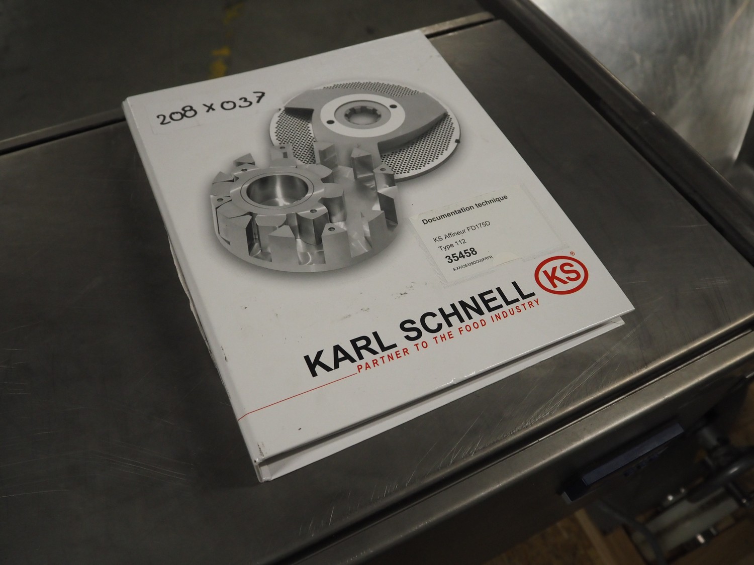 Karl Schnell mobile micro cutter, type: 112, serial number: 35458, year of construction: 2014, 400 V, 3 Ph, 50 Hz, 91.1 A, 52.2 kW, weight: 542 kg, dimensions: 1700 mm x 1600 mm x 1150 mm. Including crate with parts.