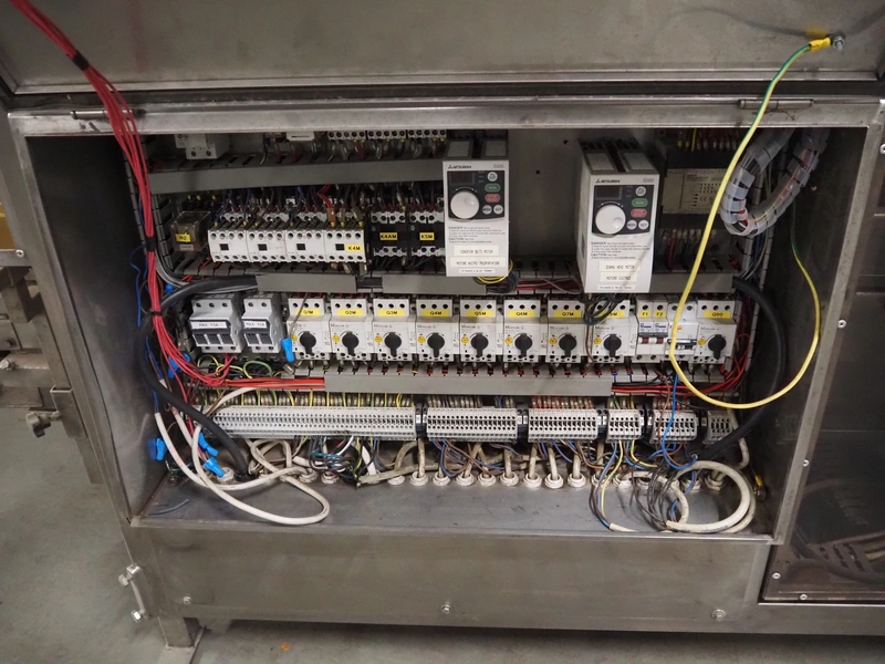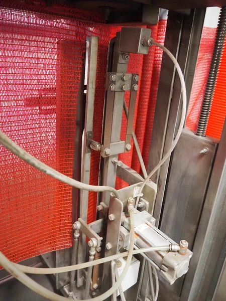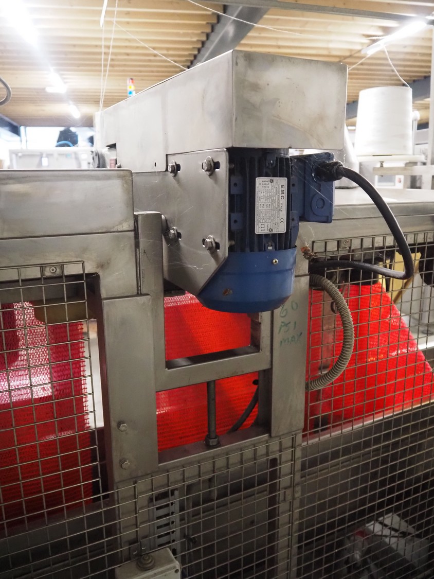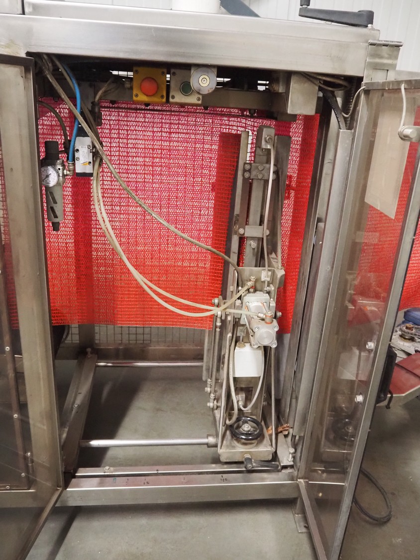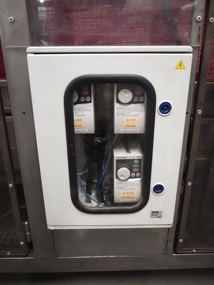 Saclark rollstock bag filling machine, type: SCH 35, number: 166 06, year of construction: 2006, 220 V, 3 Ph, 50 Hz, net width: 900 mm, plastic belt, belt width: 300 mm, total dimensions: 4000 mm x 1000 mm x 1800 mm.