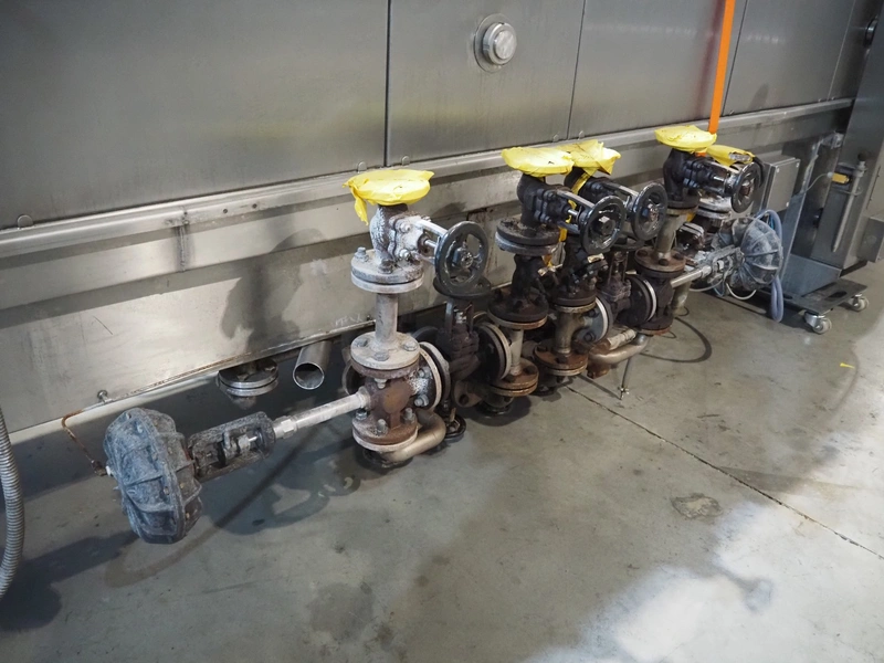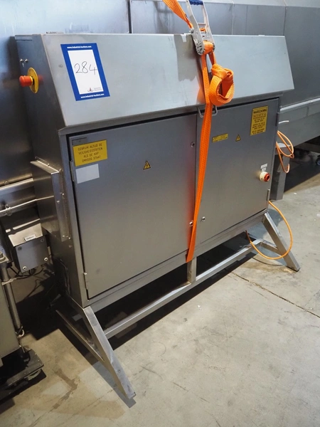 Koppens belt fryer, type: HLT 8000/600, machine number: HLT 8000/600-53, 380 V, 3 Ph, 50 Hz, 19.38 A, 8.05 kW, weight: 3500 kg, s/s belt, belt width: 600 mm, total dimensions: 8100 mm x 2100 mm x 2950 mm. Without rollies.
