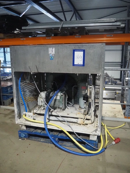 Funk flake ice machine, working width: 560 mm, Bizerba cooling and condensing unit, compressor type: 4EC-4.2Y-40S, serial number: 1678814521, 22.7/27.4 m³ per hour, dimensions: 1250 mm x 1000 mm x 1270 mm.
