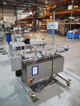 AEW Delford labelling machine with top and bottom labeller, plastic belts, belt width: (1x) 195 mm, (2x) 90 mm, total dimensions: 1…0 bidsLot is closed -