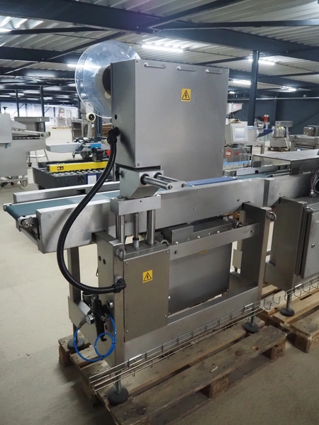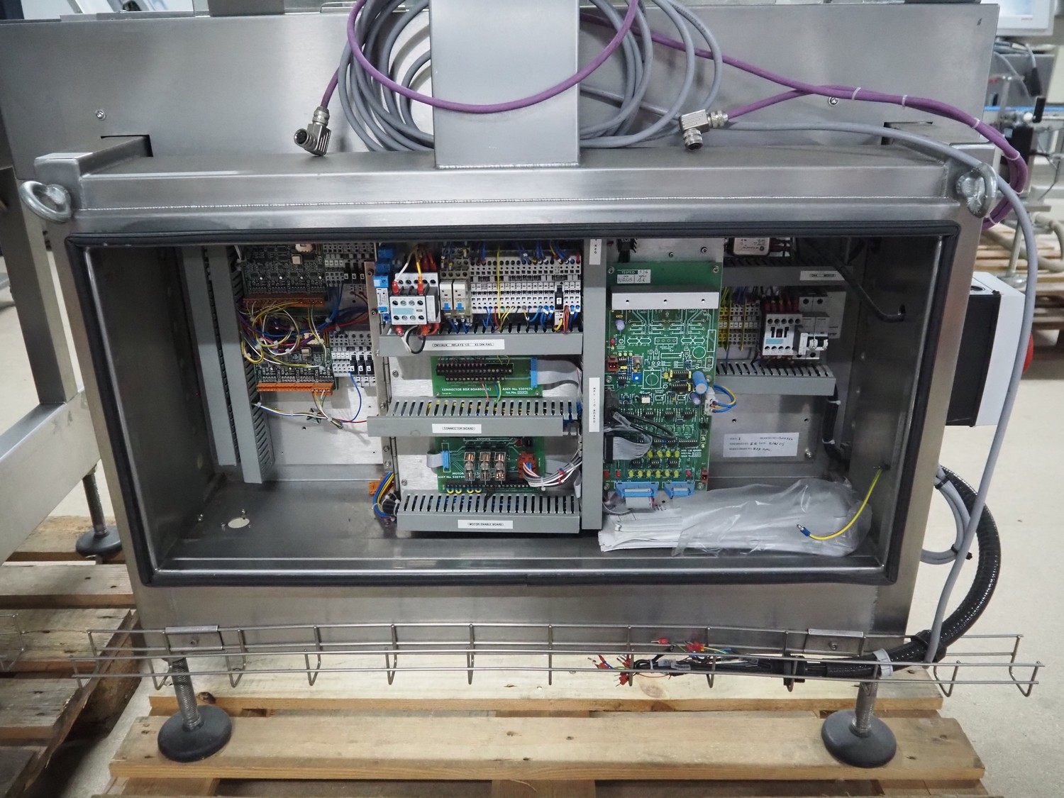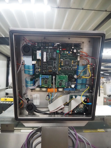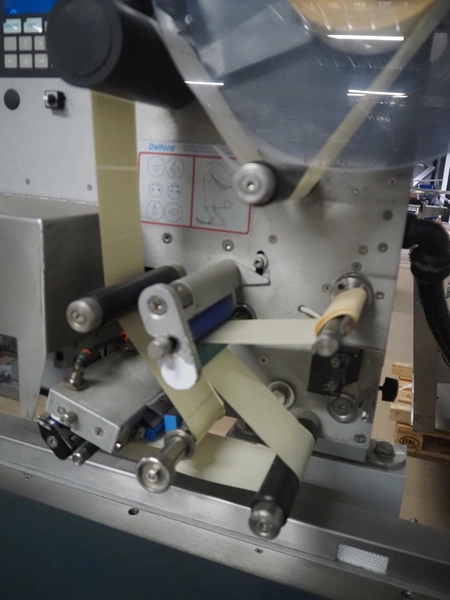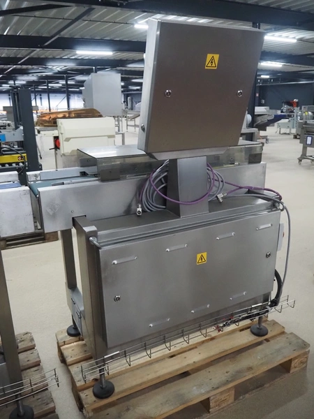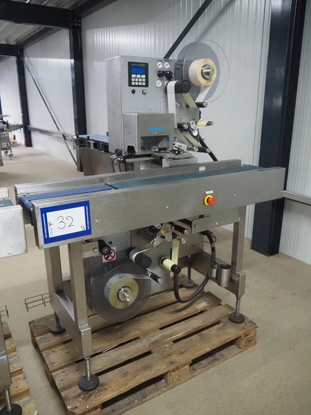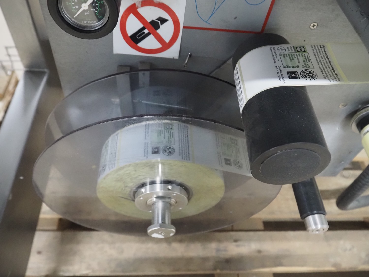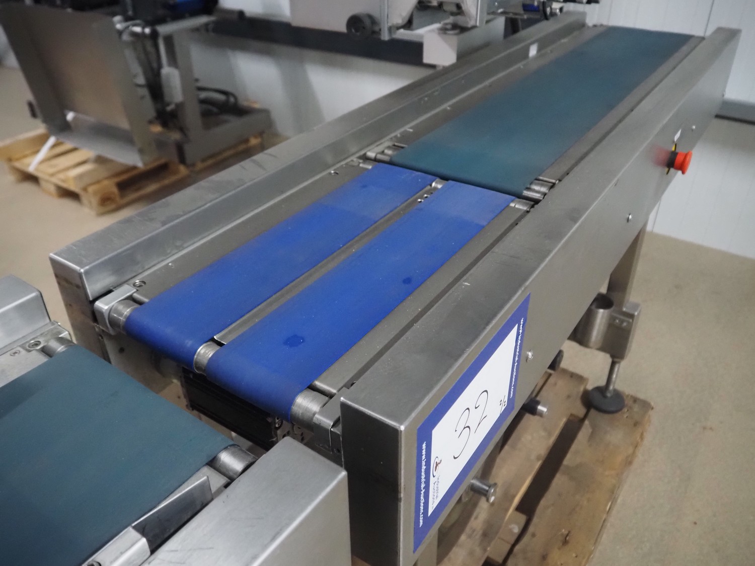 AEW Delford checkweigher with labelling machine, type checkweigher: 8060, fabrication number: 81133, year of construction: 2005, 230 V, 50 Hz, maximum weight: 1500-4000 gram, minimum weight: 20-40 gram, e =1-2 gram, T = -1000 gram, type labeller: 8000, plastic belt, belt width: (2x) 90 mm and 195 mm, dimensions checkweigher: 1500 mm x 700 mm x 1630 mm and dimensions labelling machine: 1200 mm x 700 mm x 1530 mm.
