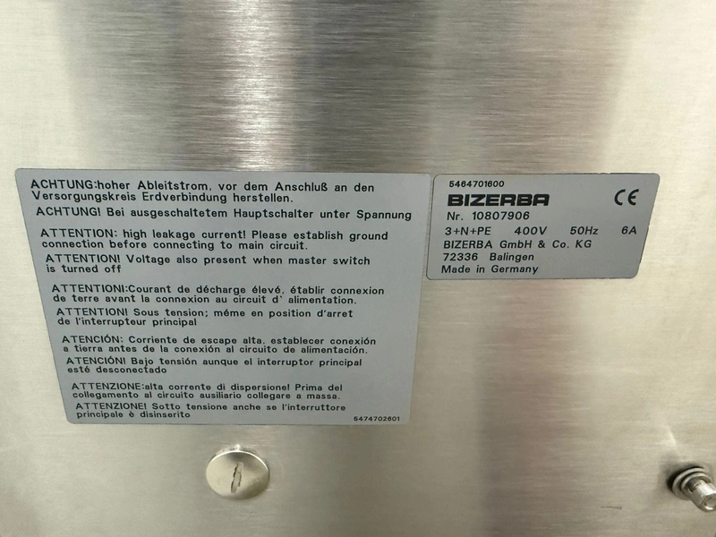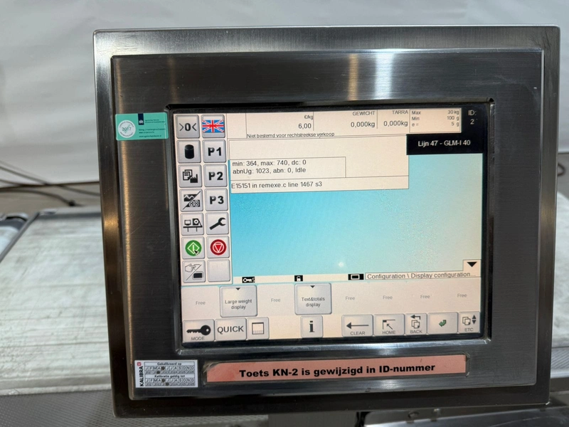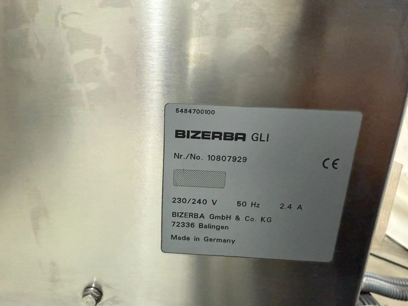 Bizerba weighing and labelling machine, model: GLM-I 40, number: 10807906, 400 V, 3 Ph, 50 Hz, 6 A, dimensions: 2500 mm x 2200 mm x 1500 mm.