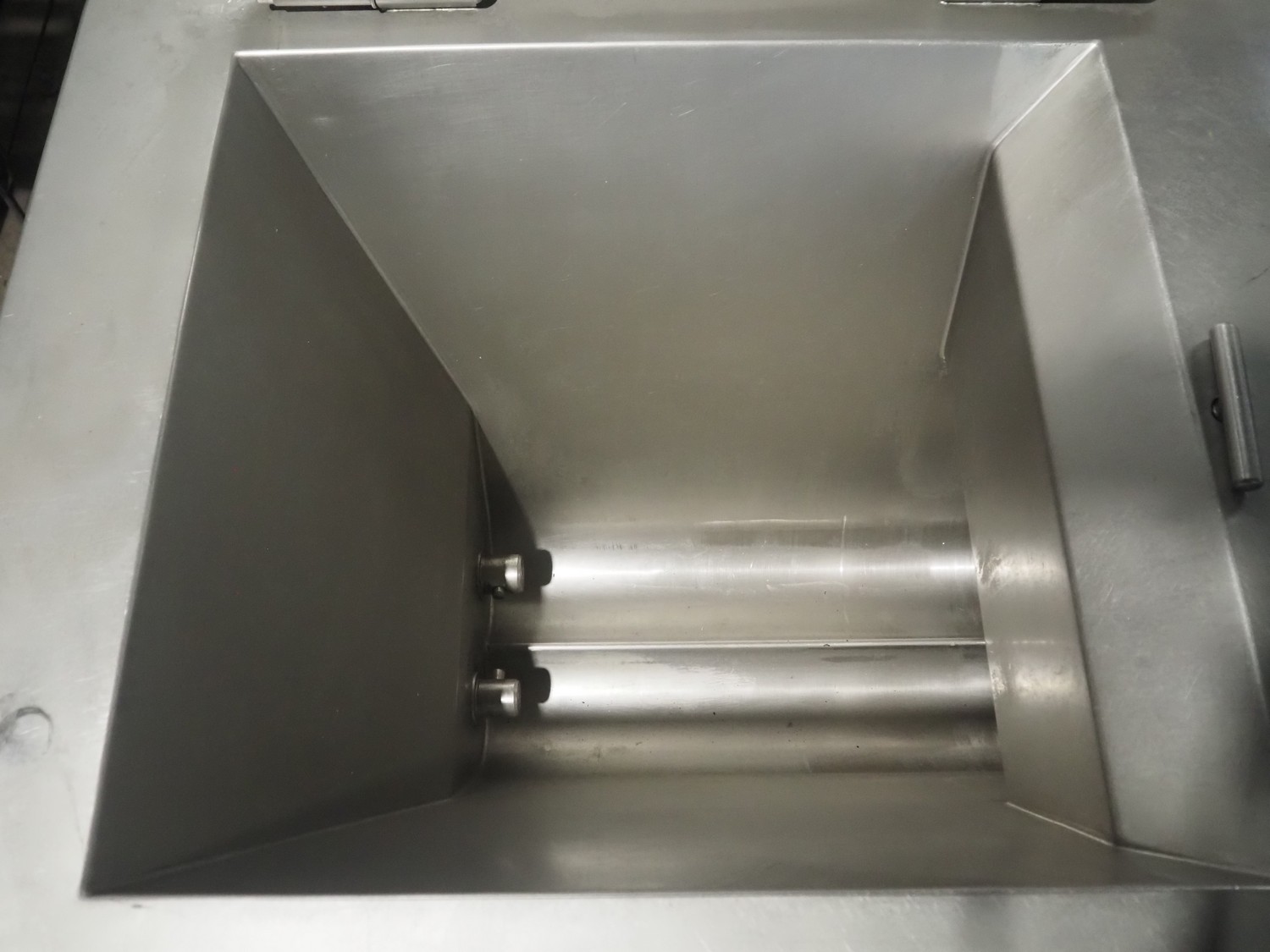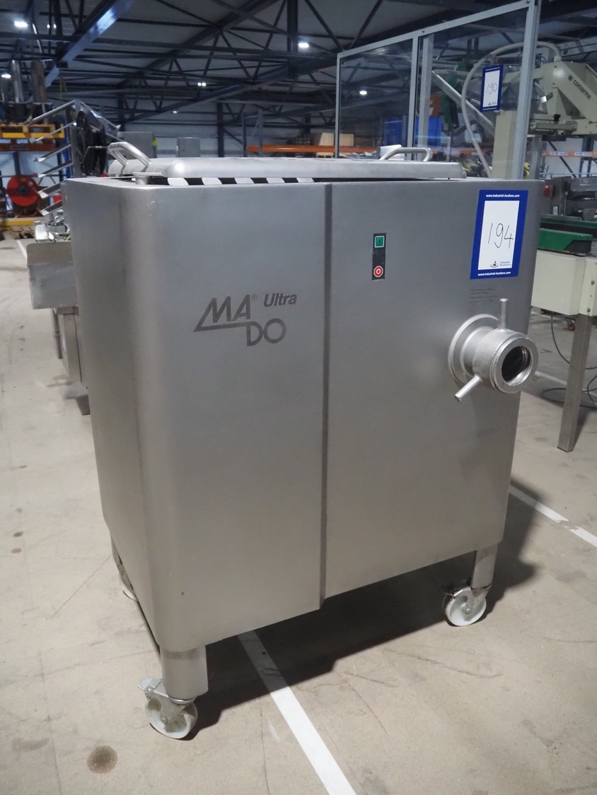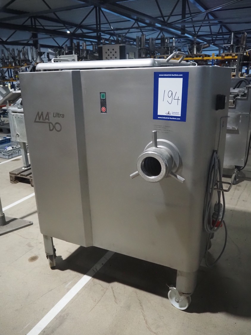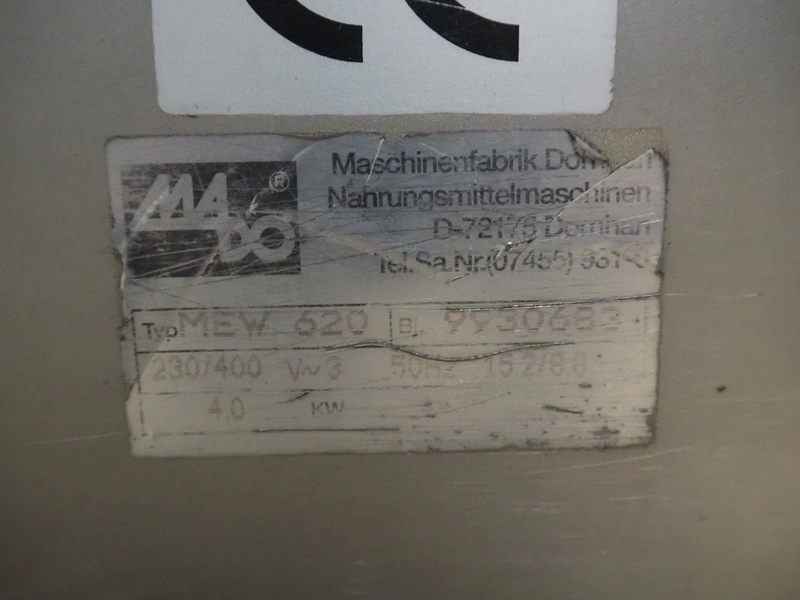 Mado mobile grinder, type: MEW 620, serial number: 9830524, 230/400 V, 3 Ph, 50 Hz, 15.2/8.8 A, 4 kW, plate diameter: 98 mm, total dimensions: 1050 mm x 800 mm x 1300 mm. Incomplete.
