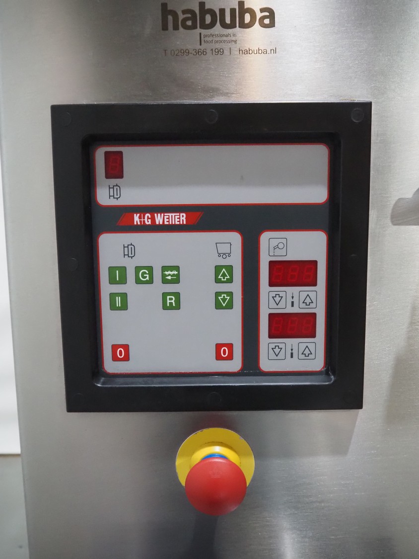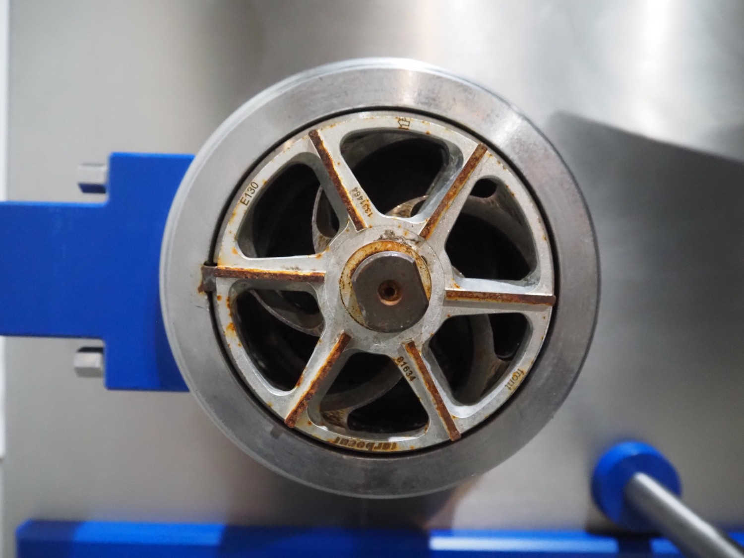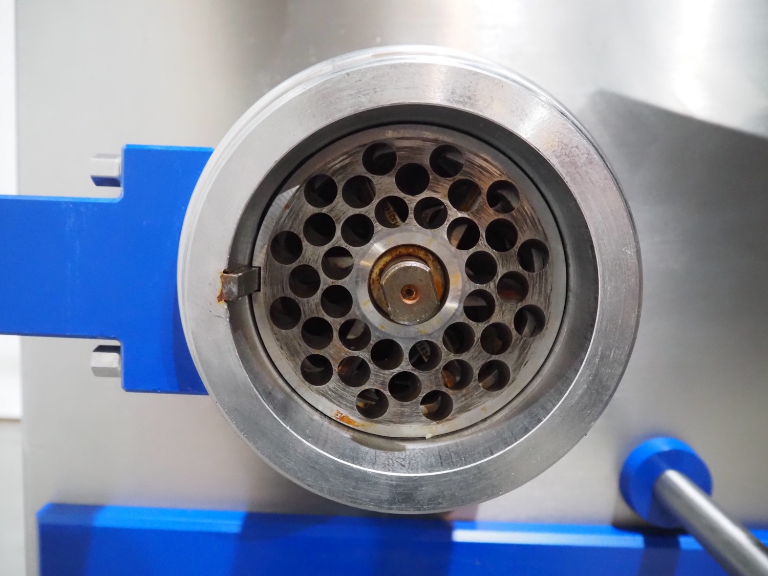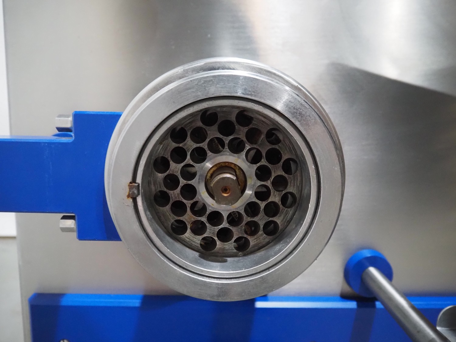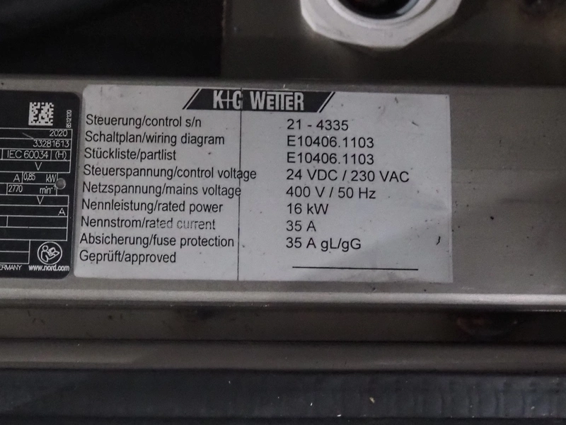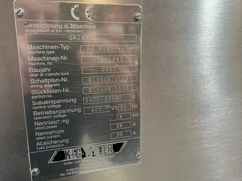 K+G Wetter grinder, type: WW E130-442, number: 442/1042, year of construction: 2021, 230 V, 50 Hz, 35 A, 16 kW, diameter plate: 130 mm, total dimensions: 1400 mm x 1400 mm x 1850 mm. Including crate with parts.