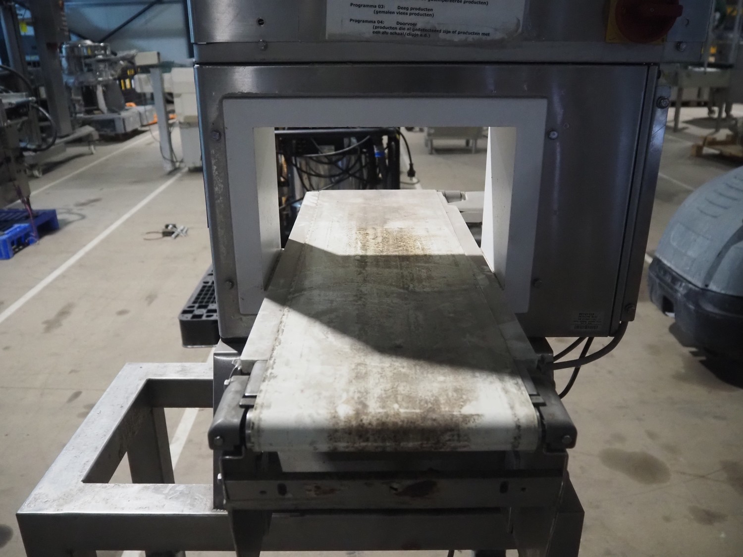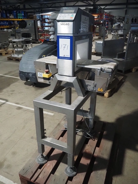 Anritsu metal detector, model: VRG80, year of construction: 2003, plastic belt, belt width: 220 mm, clearance: 295 mm x 180 mm, total dimensions: 800 mm x 850 mm x 480 mm.