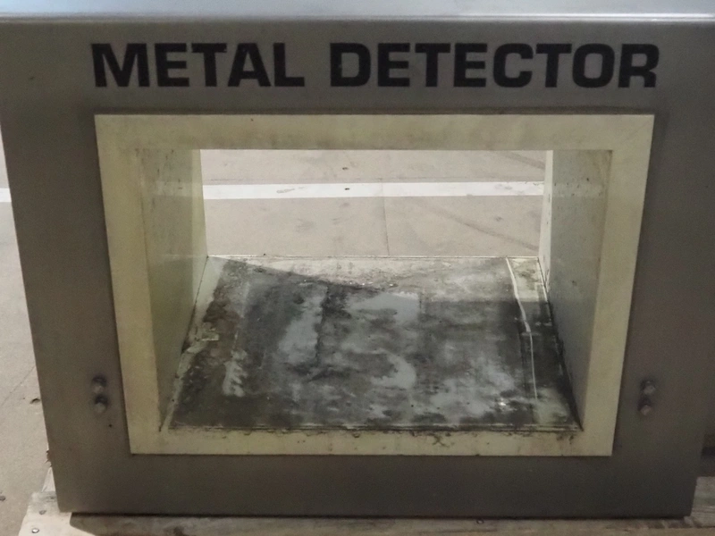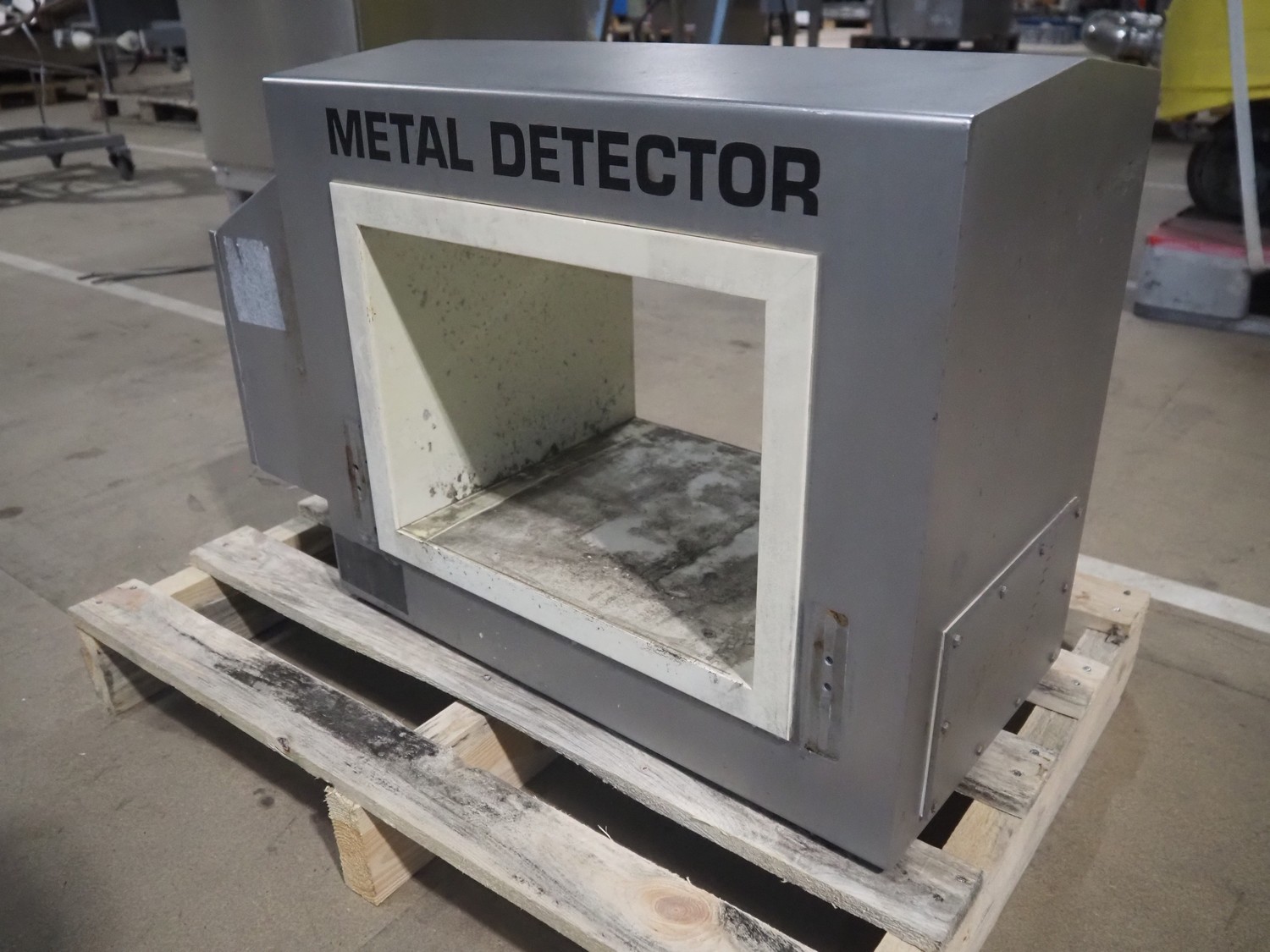 Bizerba metal detector head, clearance: 350 mm x 250 mm, total dimensions: 740 mm x 300 mm x 480 mm.