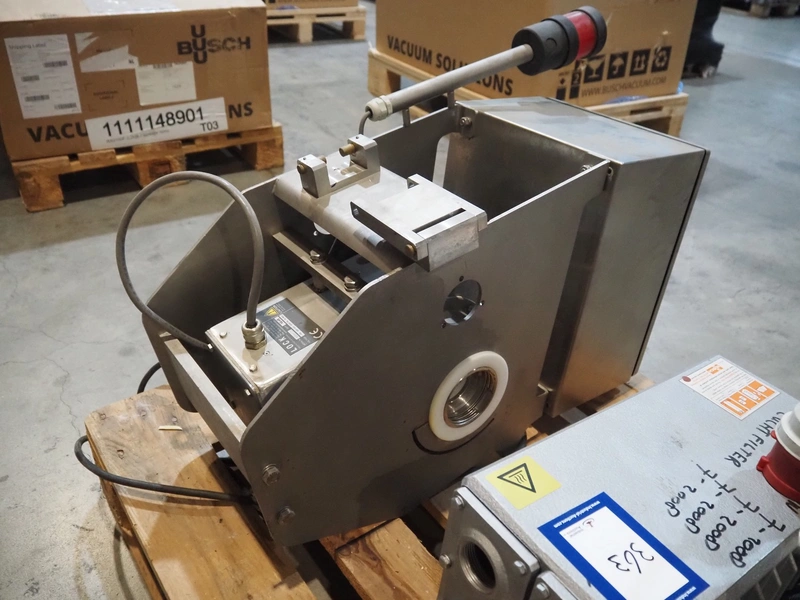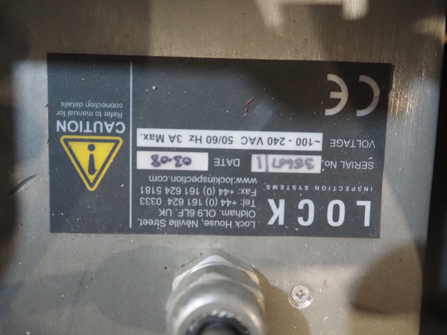 Lock Inspection Systems Ltd. pipe line metal detector head, serial number: 35651-1, year of construction: 03-08, 100-240 V, 50/60 Hz, 3 A, diameter pipe: 55 mm, total dimensions: 400 mm x 500 mm x 790 mm.