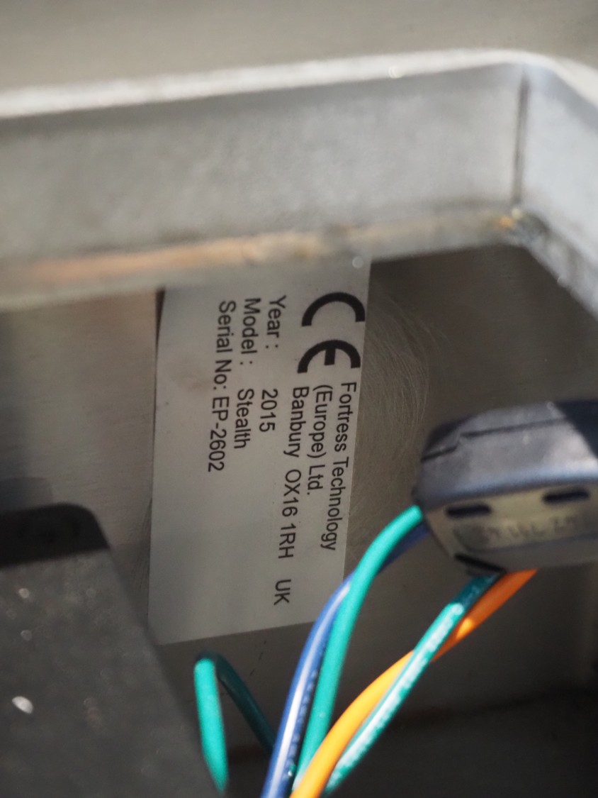 Fortress metal detector, model: Stealth, serial number: EP-2602, year of construction: 2015, plastic belt, belt width: 265 mm, clearance: 325 mm x 535 mm, total dimensions: 1270 mm x 780 mm x 1900 mm.