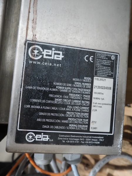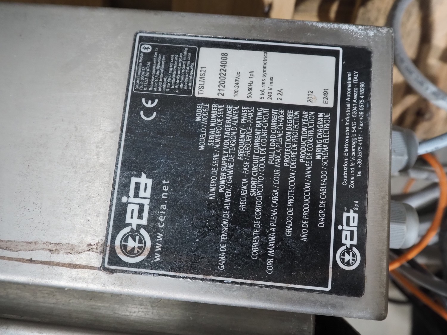 Pallet with Ceia metal detector head, model: T/SLMS21-400175007, serial number: 21200224008, year of construction: 2012, 100-240 V, 1 Ph, 50/60 Hz, 2.2 A, clearance: 400 mm x 175 mm, total dimensions: 750 mm x 400 mm x 250 mm.