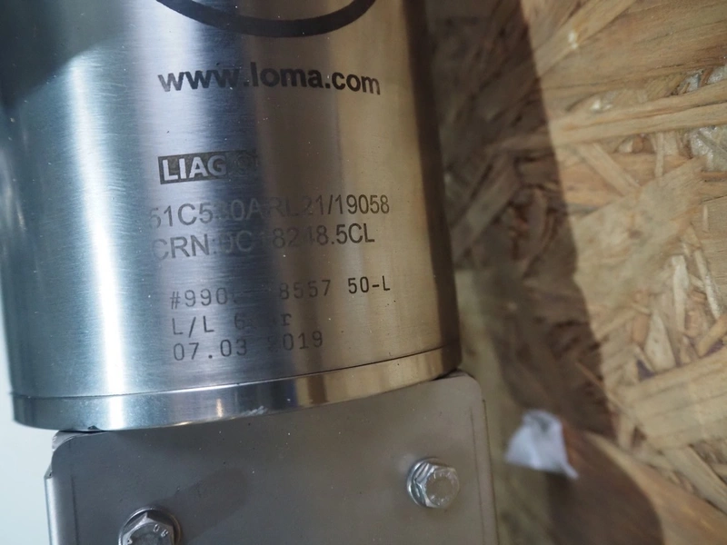 Loma Systems pipeline metal detector with rejector, model: Pipeline IQ4, serial number: DPL022063-53890D, year of construction: 5.10.2020, diameter clearance: 50 mm, total dimensions: 560 mm x 960 mm x 780 mm. Control screen damaged.
