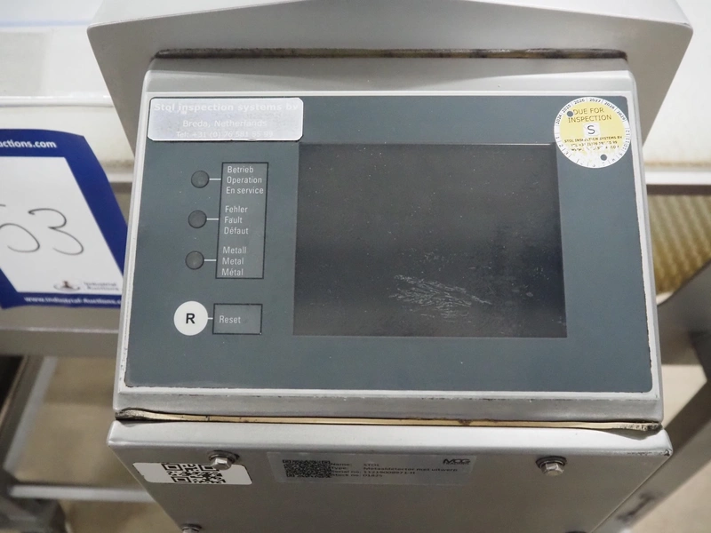 Stol Inspection systems BV metal detector with rejector belt, type: Unicon+W, serial number: 11219008971-H, year of construction: 2012, 230/115 V, 50/60 Hz, 0.75/1.5 A, plastic belt, belt width: 550 mm, clearance: 600 mm x 100 mm, total dimensions: 1700 mm x 1100 mm x 1380 mm.