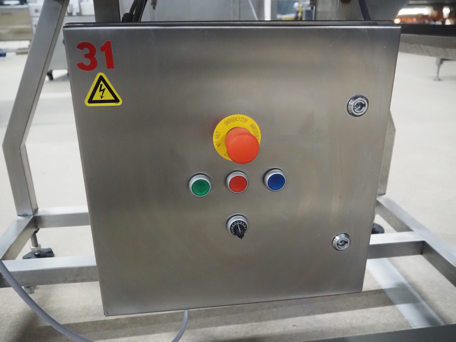 Cintex metal detector, plastic belt, belt width: 380 mm, clearance: 350 mm x 170 mm, total dimensions: 1650 mm x 980 mm x 1500 mm.